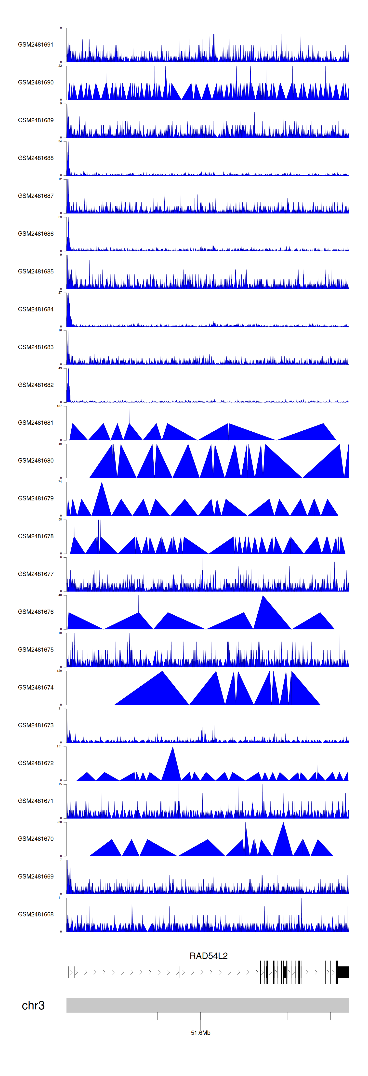 > Dataset: GSE94732 - RAD54L2 peak across samples