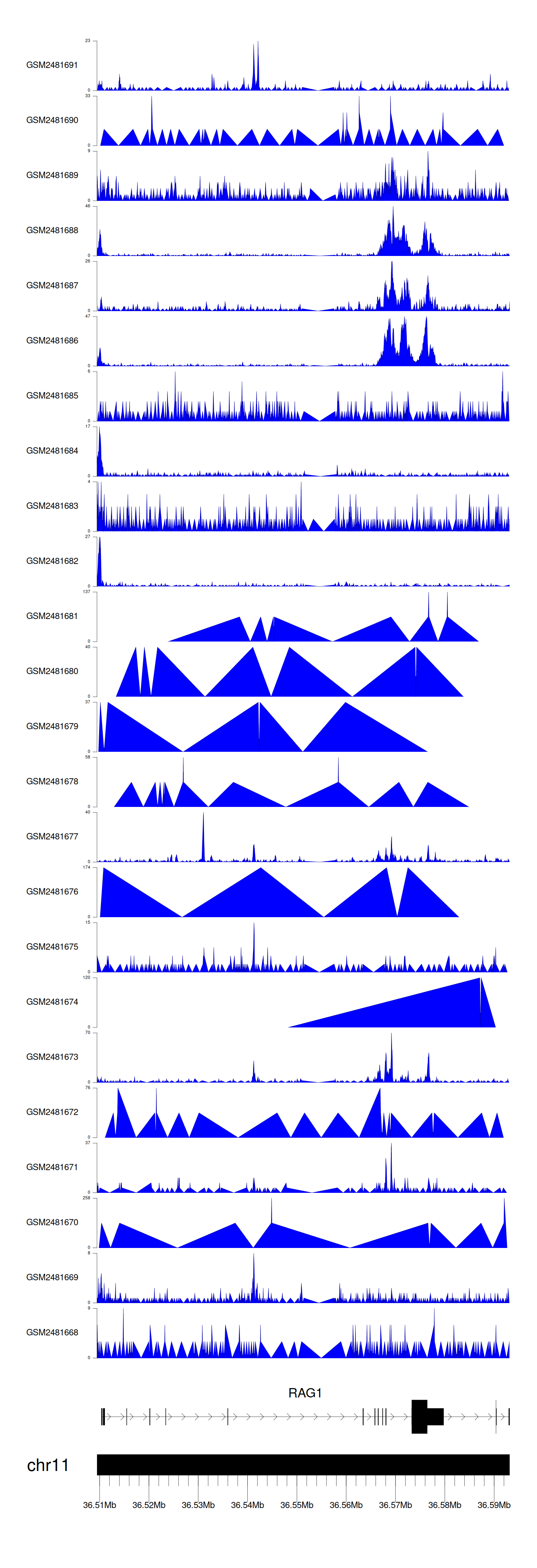 > Dataset: GSE94732 - RAG1 peak across samples