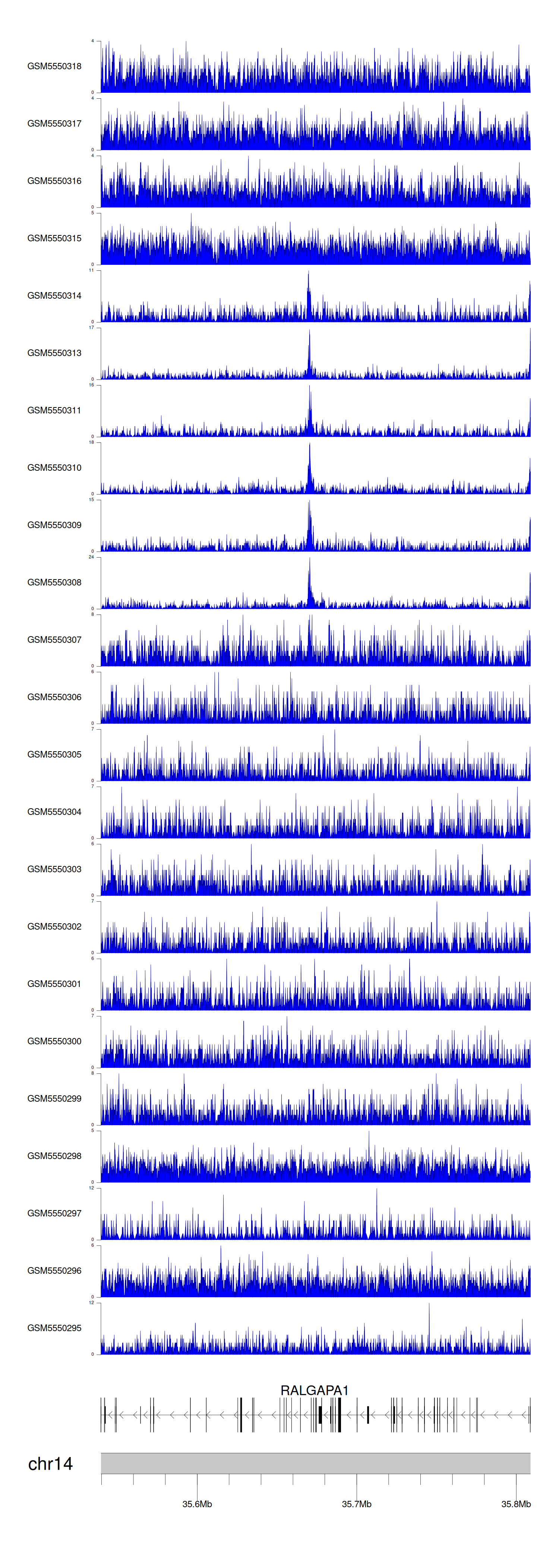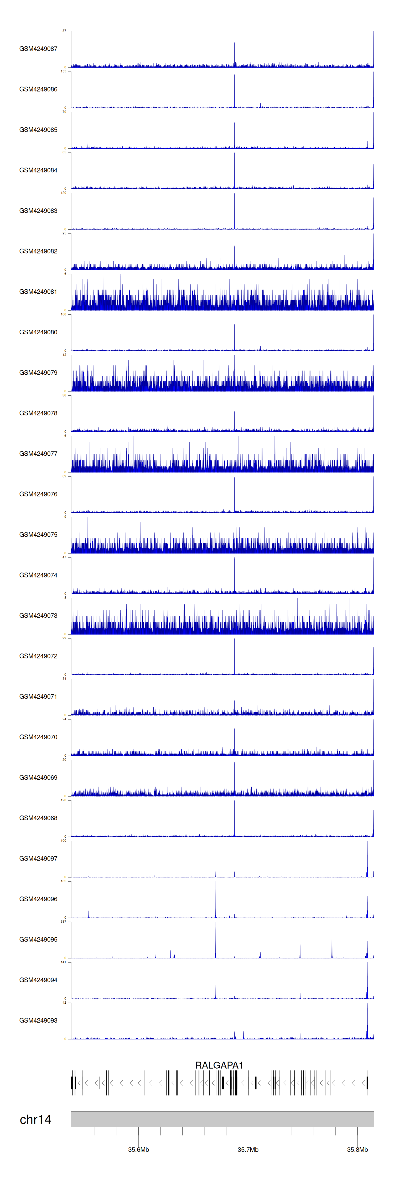 > Dataset: GSE143026 - RALGAPA1 peak across samples