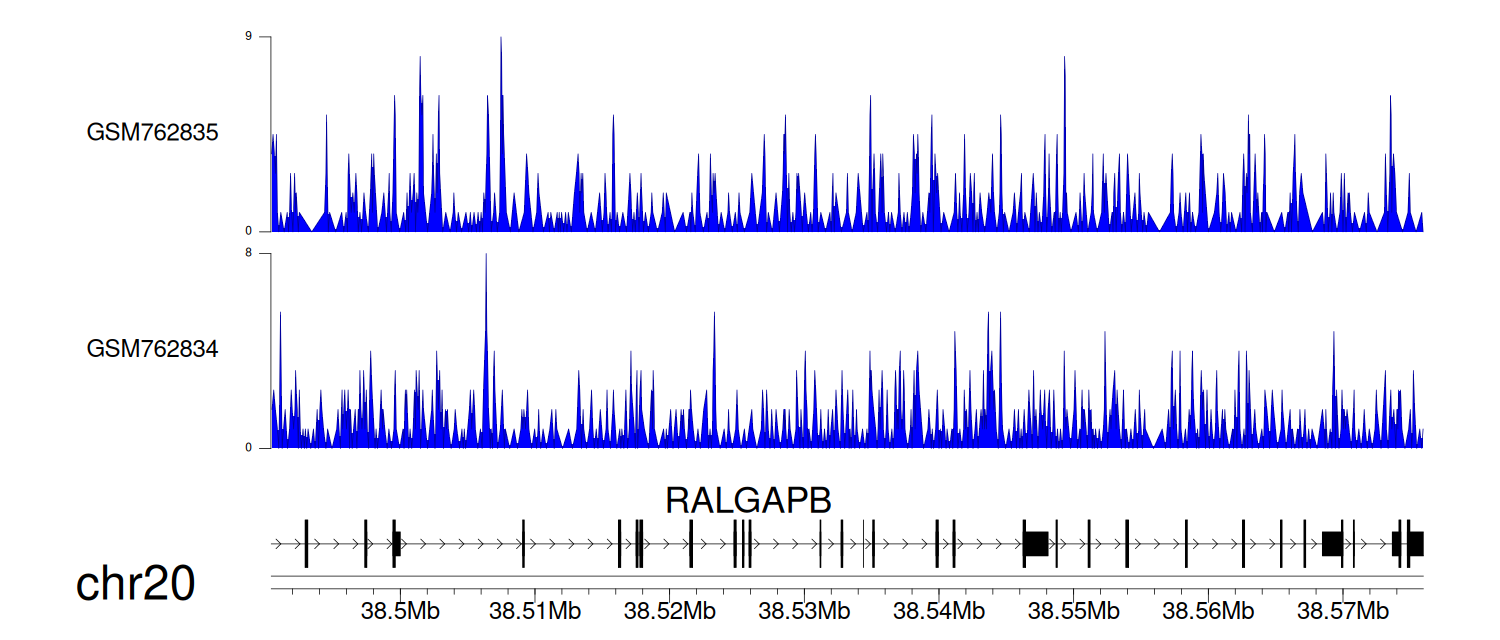 > Dataset: GSE30738 - RALGAPB peak across samples