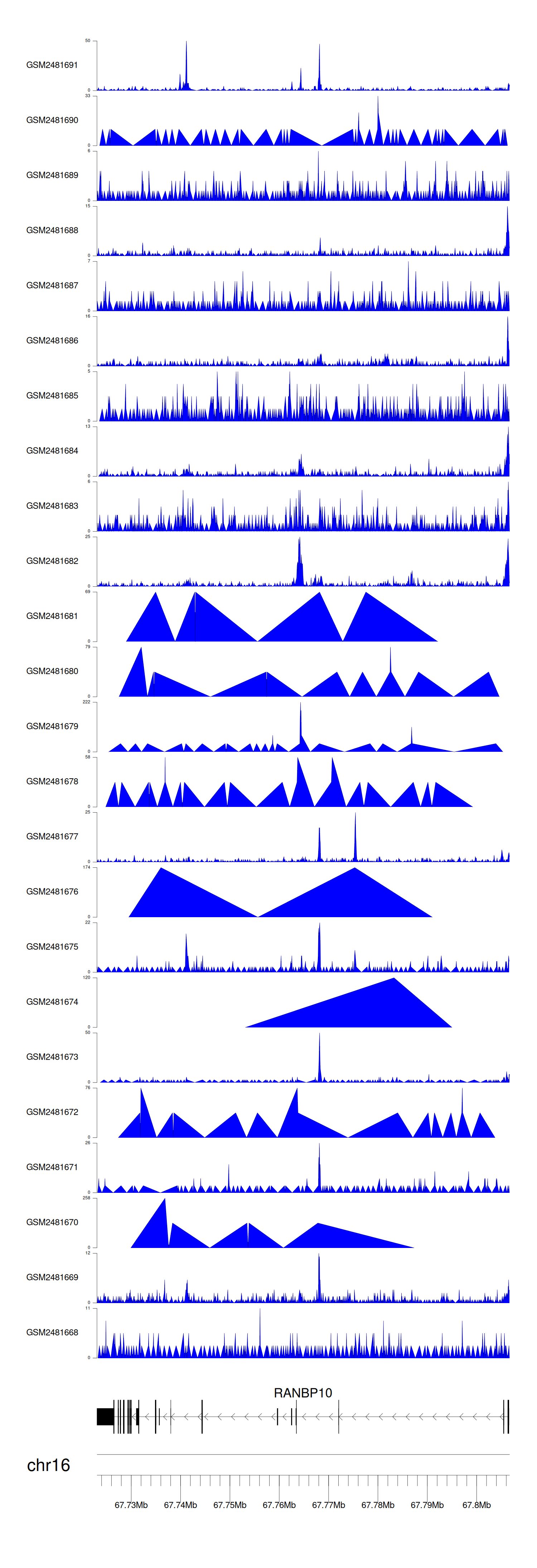> Dataset: GSE94732 - RANBP10 peak across samples