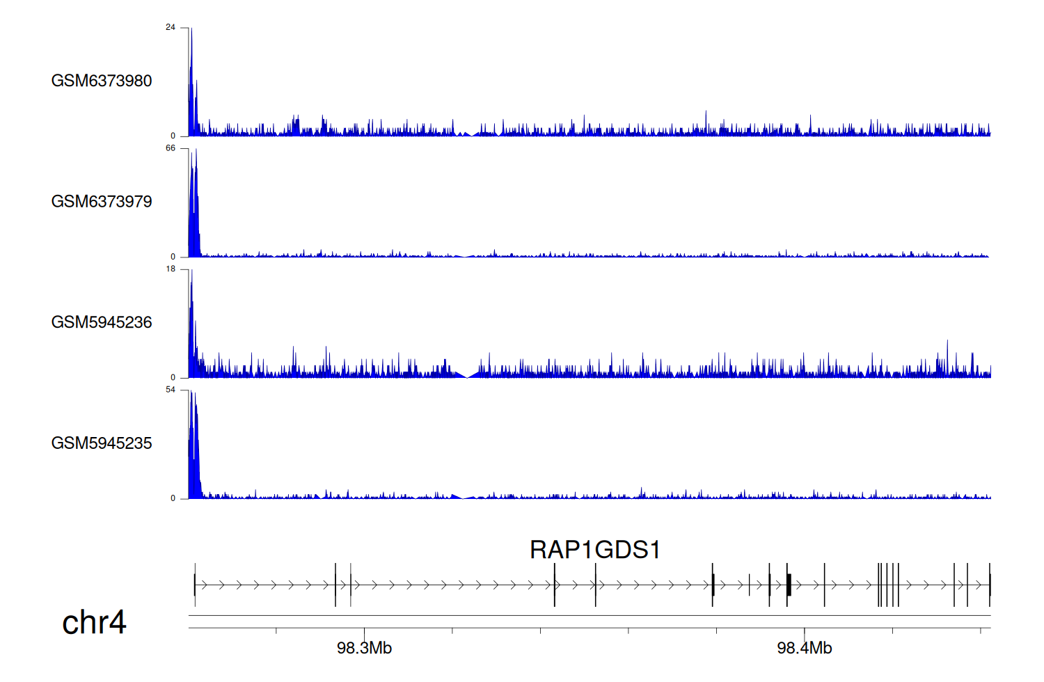> Dataset: GSE246060 - RAP1GDS1 peak across samples