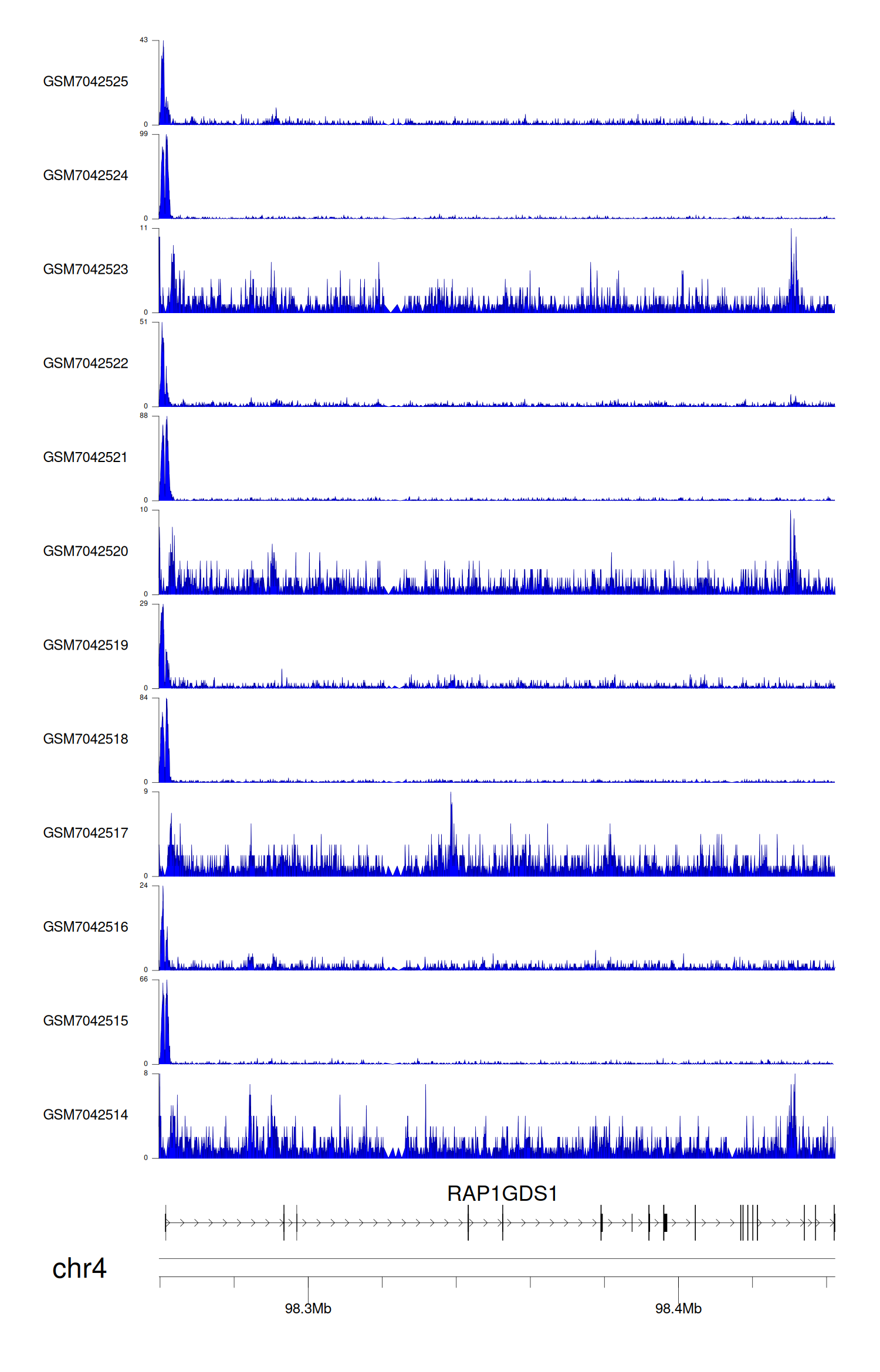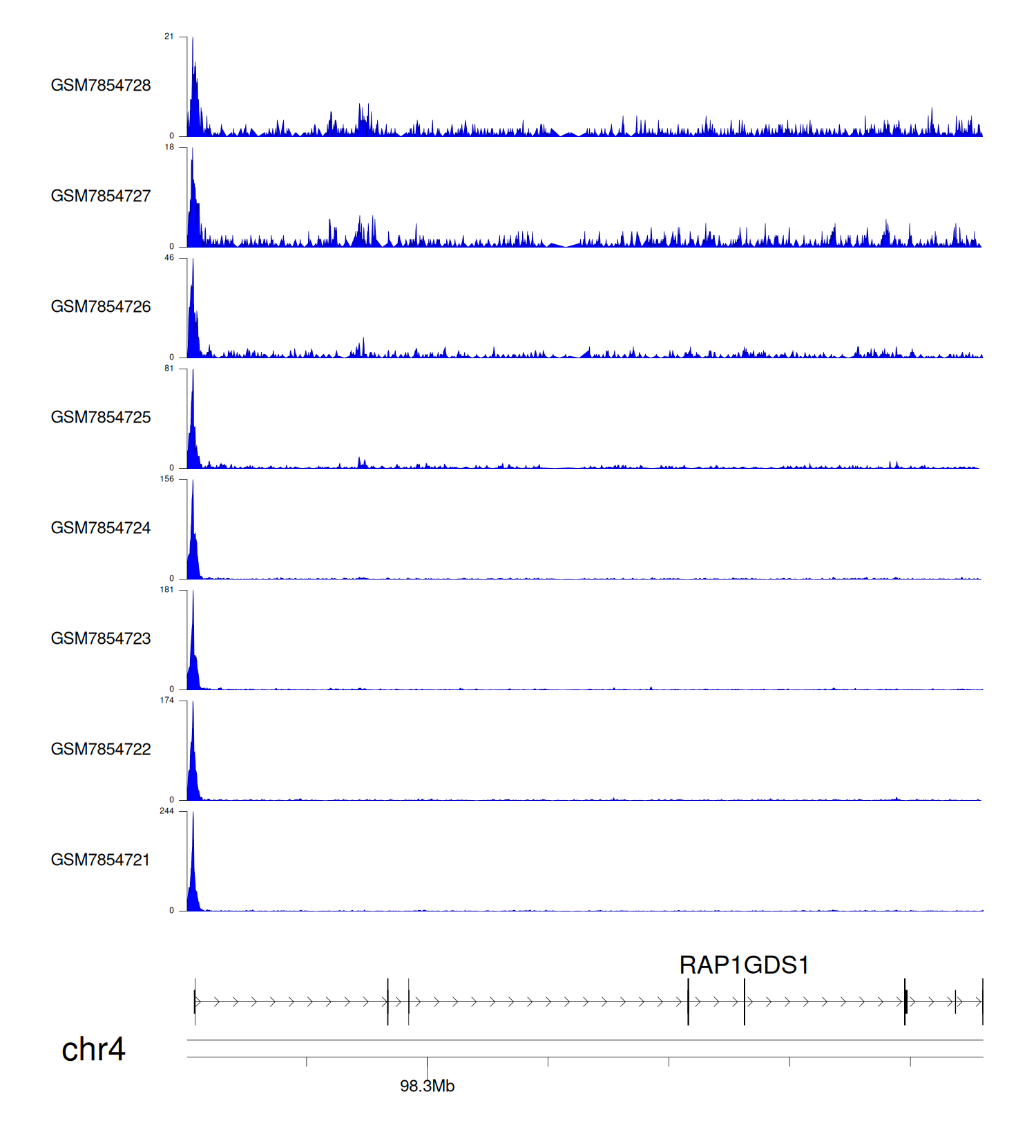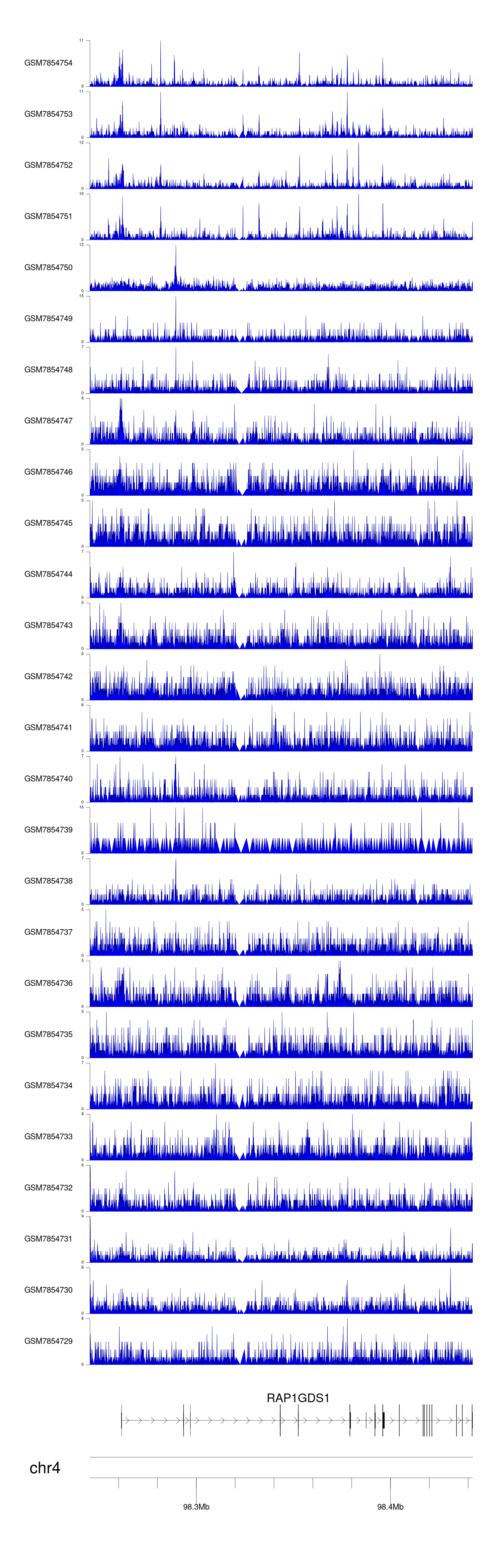 > Dataset: GSE198334 - RAP1GDS1 peak across samples