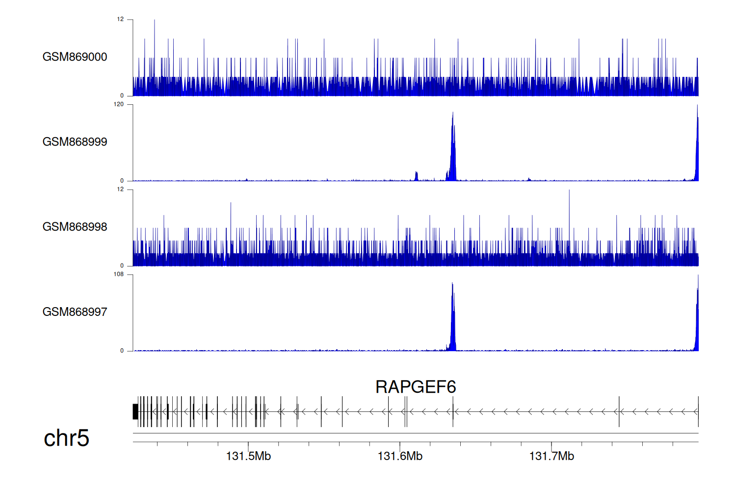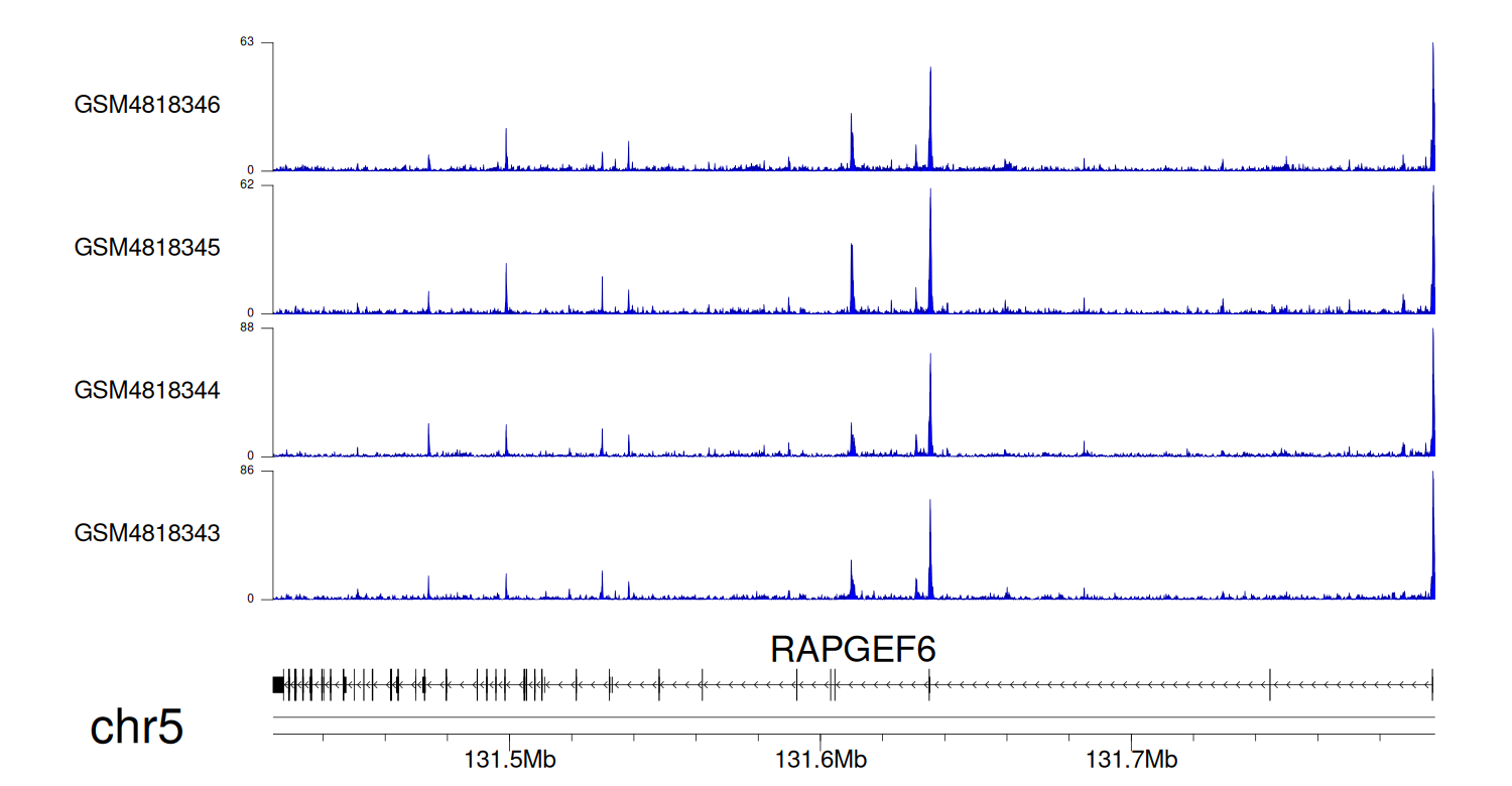 > Dataset: GSE131257 - RAPGEF6 peak across samples