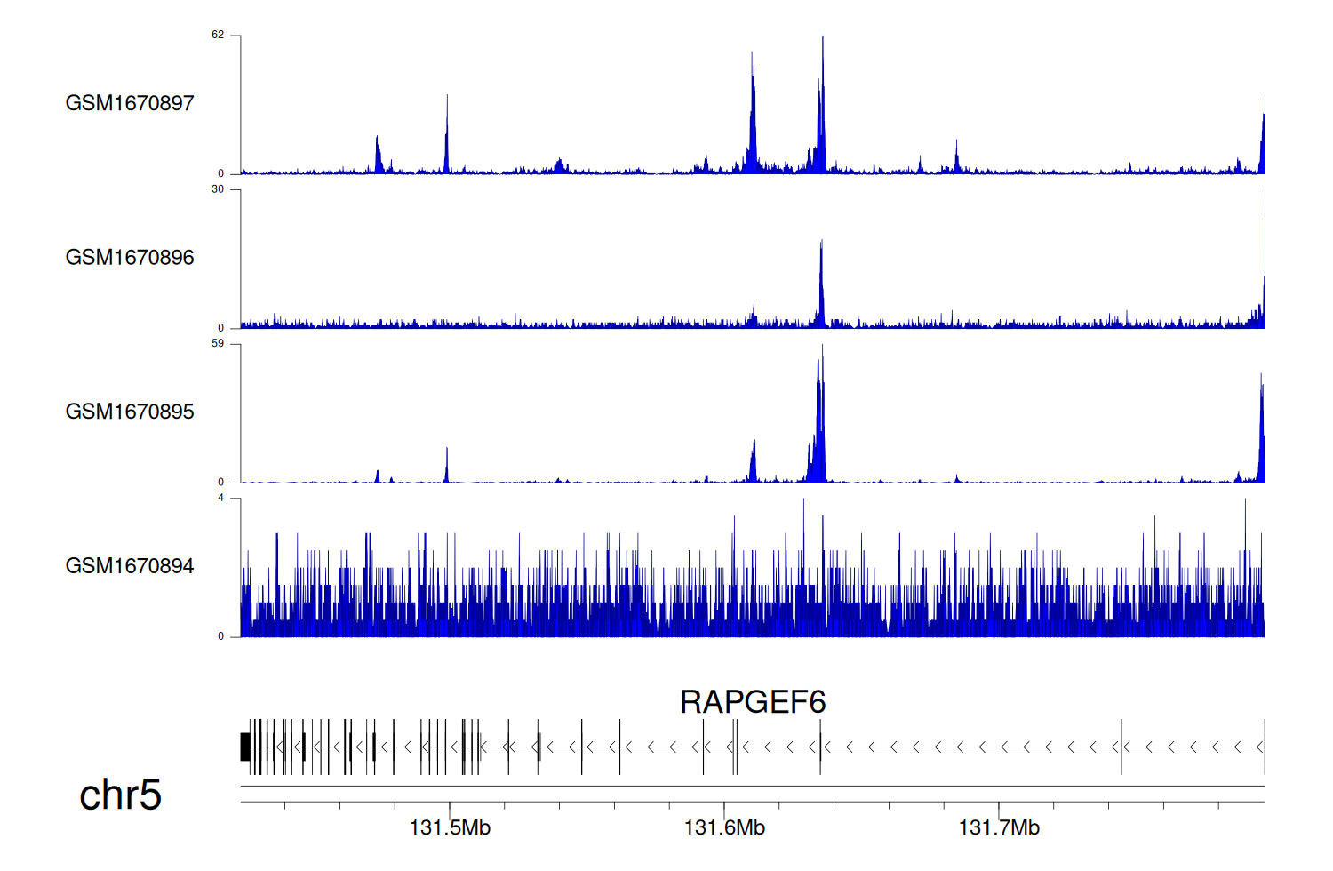 > Dataset: GSE100400 - RAPGEF6 peak across samples