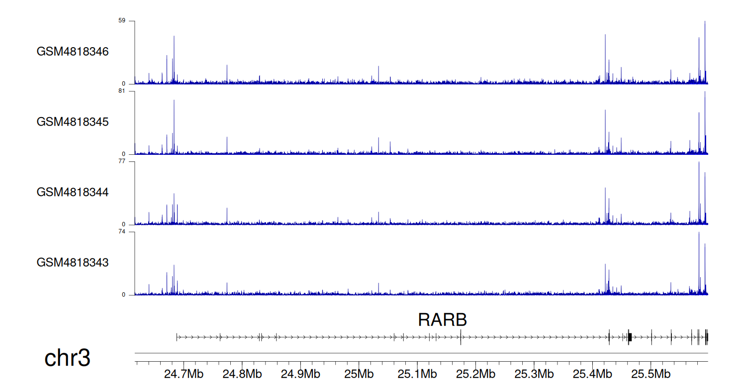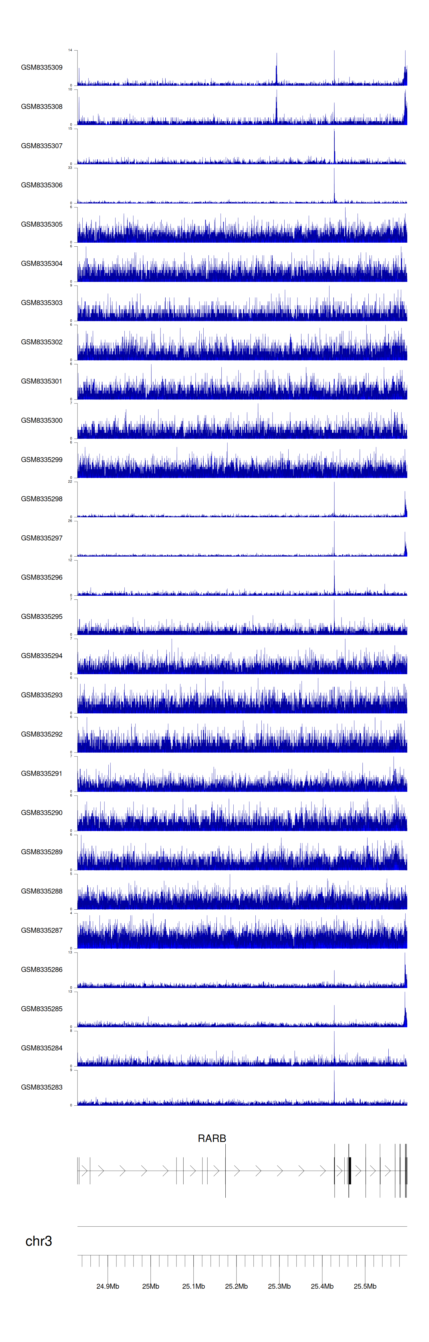 This gene encodes retinoic acid receptor beta, a member of the thyroid-steroid hormone receptor superfamily of nuclear transcriptional regulators. This receptor localizes to the cytoplasm and to subnuclear compartments. It binds retinoic acid, the biologically active form of vitamin A which mediates cellular signalling in embryonic morphogenesis, cell growth and differentiation. It is thought that this protein limits growth of many cell types by regulating gene expression. The gene was first identified in a hepatocellular carcinoma where it flanks a hepatitis B virus integration site. Alternate promoter usage and differential splicing result in multiple transcript variants. [provided by RefSeq, Mar 2014] |