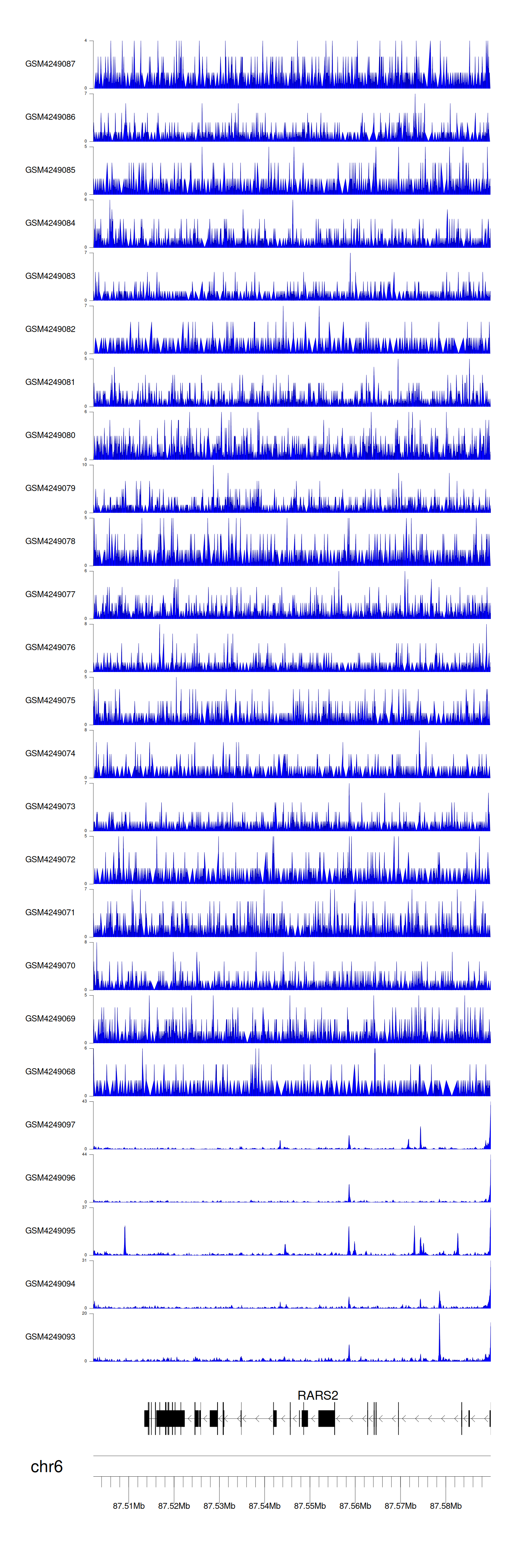 > Dataset: GSE143026 - RARS2 peak across samples