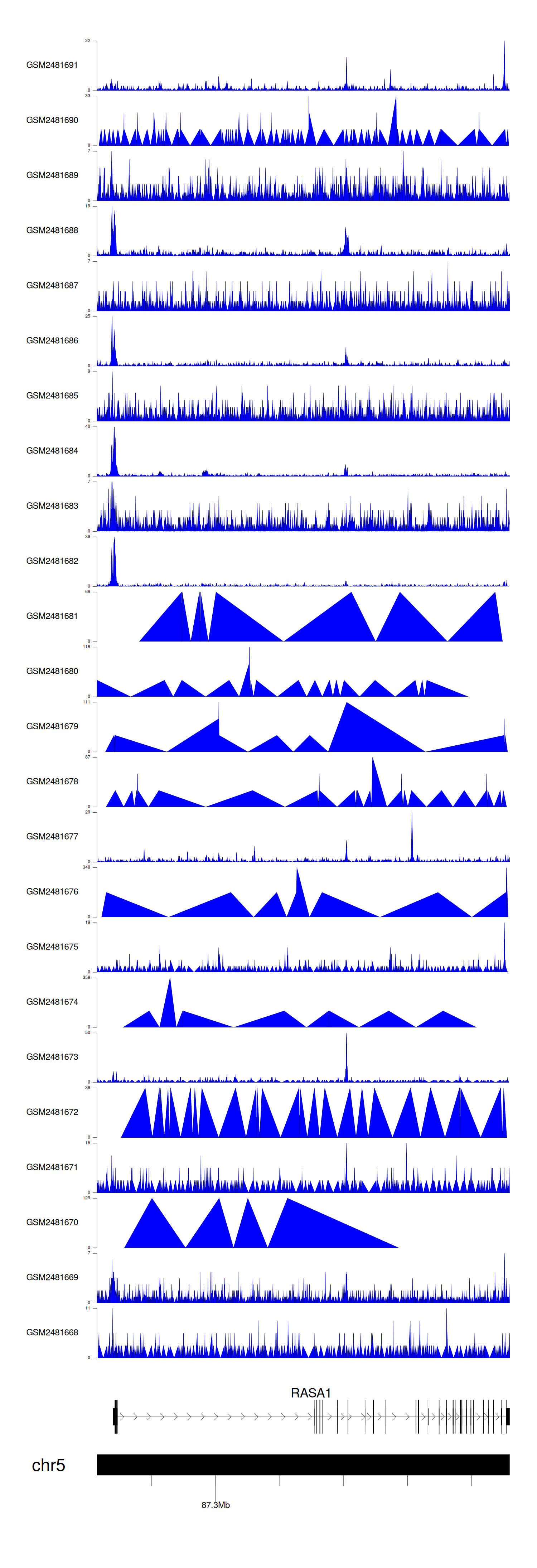 The protein encoded by this gene is located in the cytoplasm and is part of the GAP1 family of GTPase-activating proteins. The gene product stimulates the GTPase activity of normal RAS p21 but not its oncogenic counterpart. Acting as a suppressor of RAS function, the protein enhances the weak intrinsic GTPase activity of RAS proteins resulting in the inactive GDP-bound form of RAS, thereby allowing control of cellular proliferation and differentiation. Mutations leading to changes in the binding sites of either protein are associated with basal cell carcinomas. Mutations also have been associated with hereditary capillary malformations (CM) with or without arteriovenous malformations (AVM) and Parkes Weber syndrome. Alternative splicing results in two isoforms where the shorter isoform, lacking the N-terminal hydrophobic region but retaining the same activity, appears to be abundantly expressed in placental but not adult tissues. [provided by RefSeq, May 2012] |