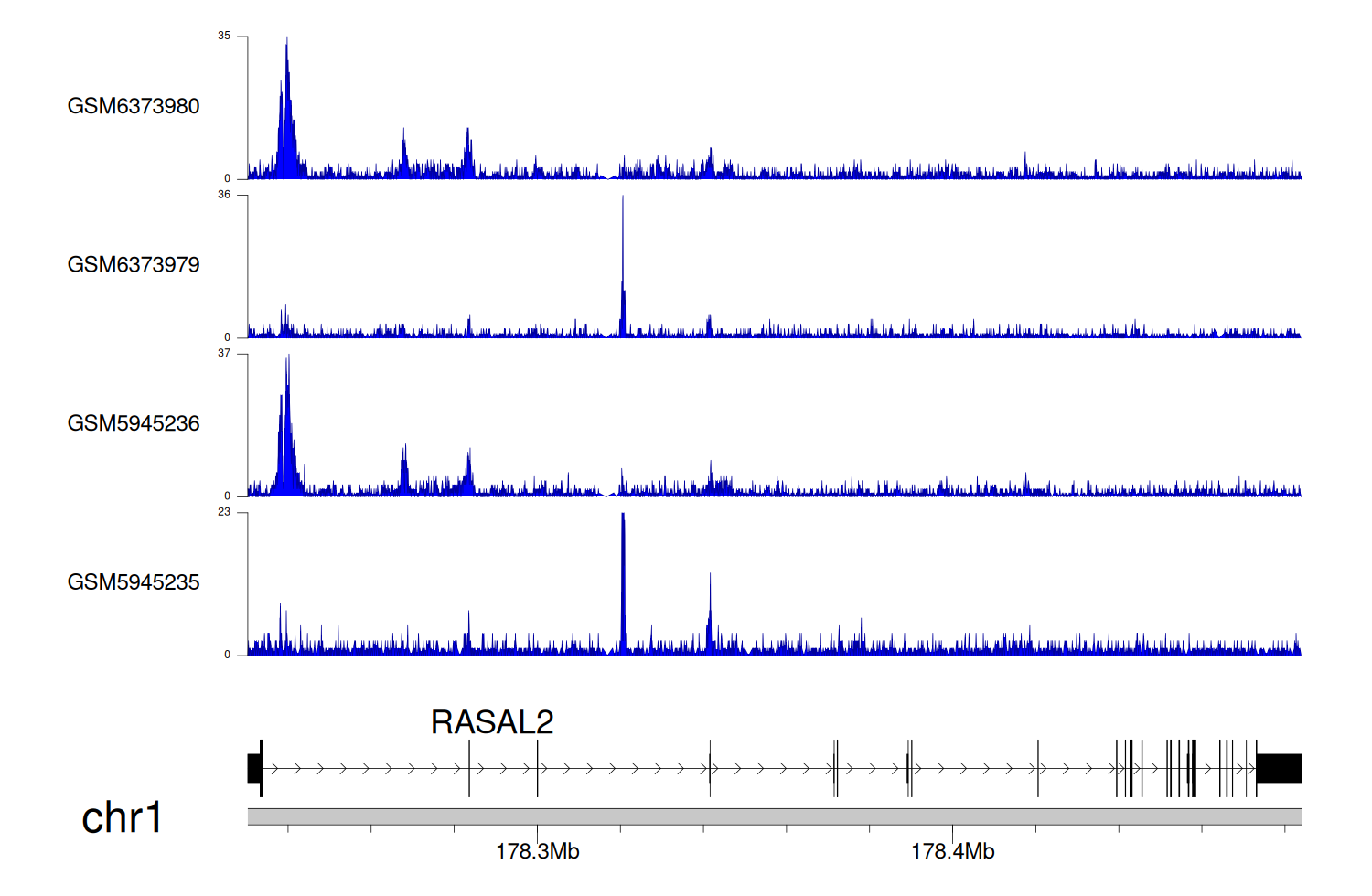 > Dataset: GSE225248 - RASAL2 peak across samples