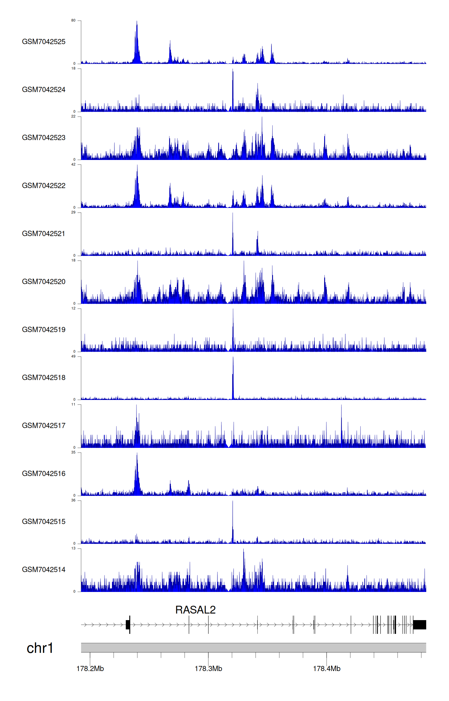 > Dataset: GSE198334 - RASAL2 peak across samples