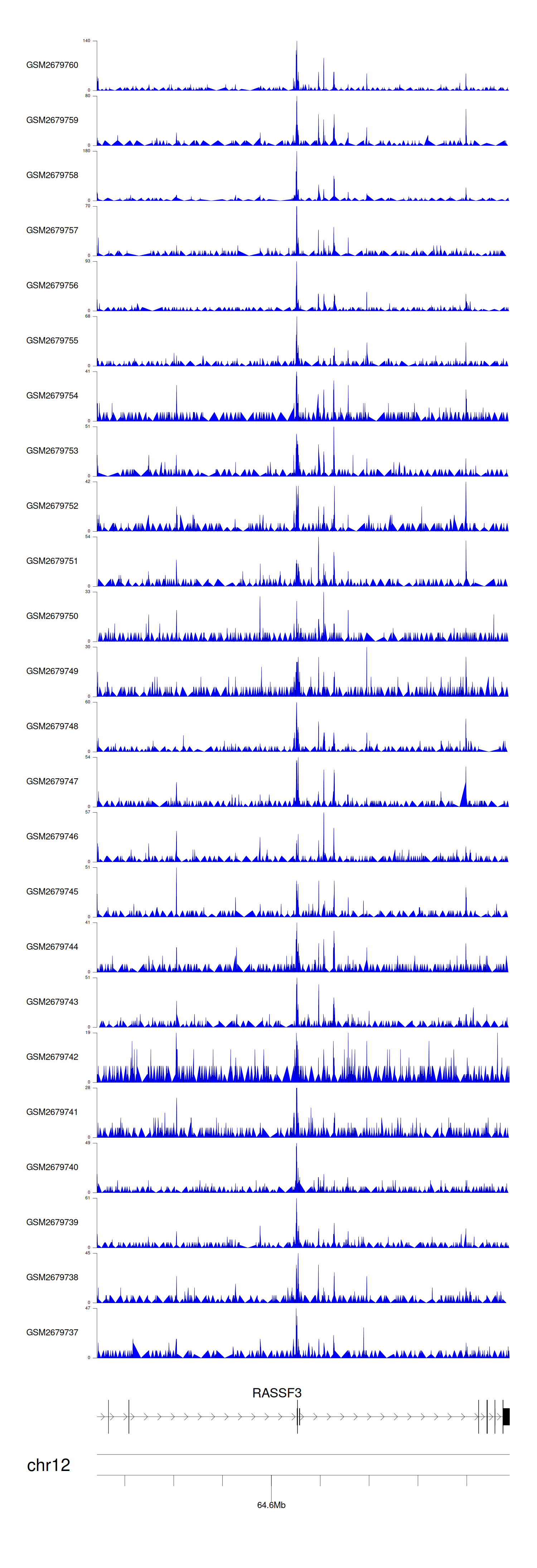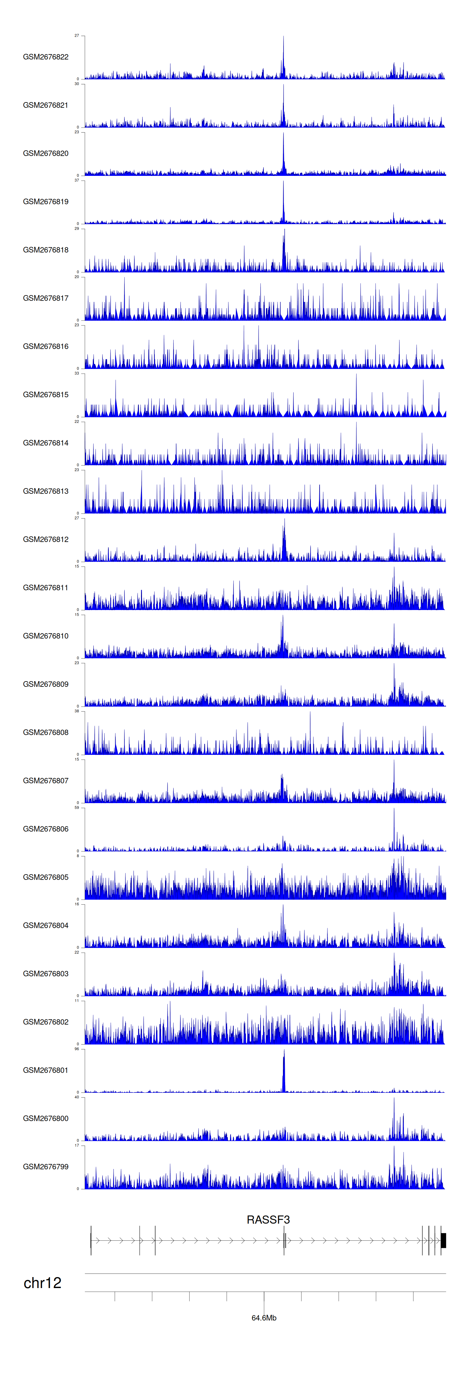 > Dataset: GSE100376 - RASSF3 peak across samples