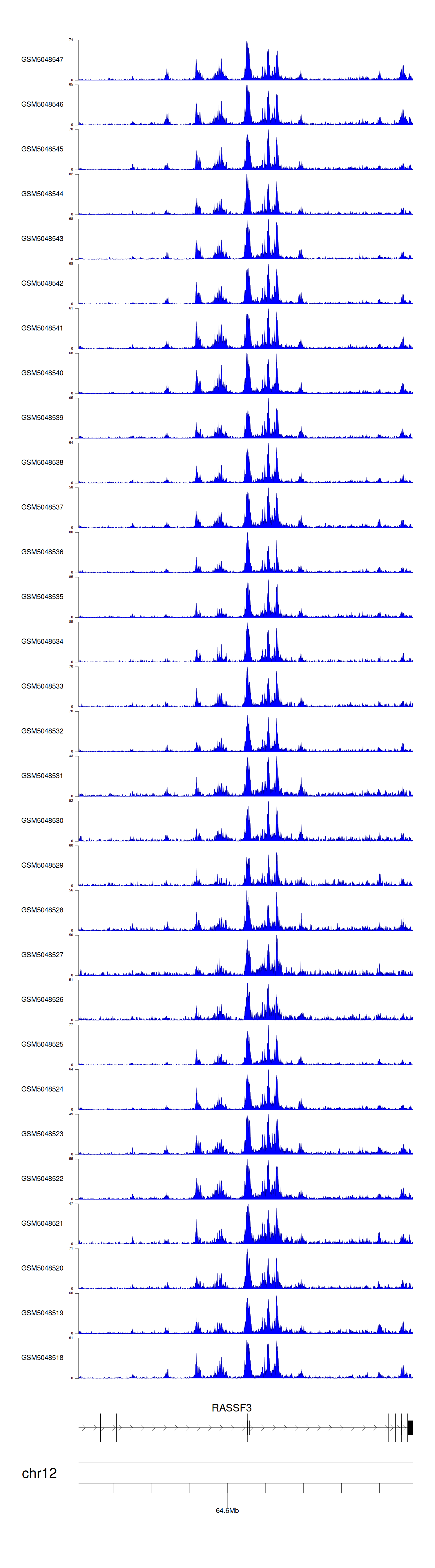 > Dataset: GSE30738 - RASSF3 peak across samples