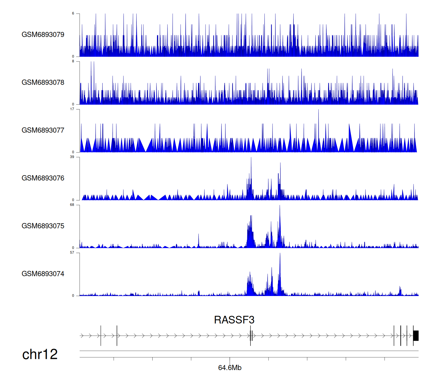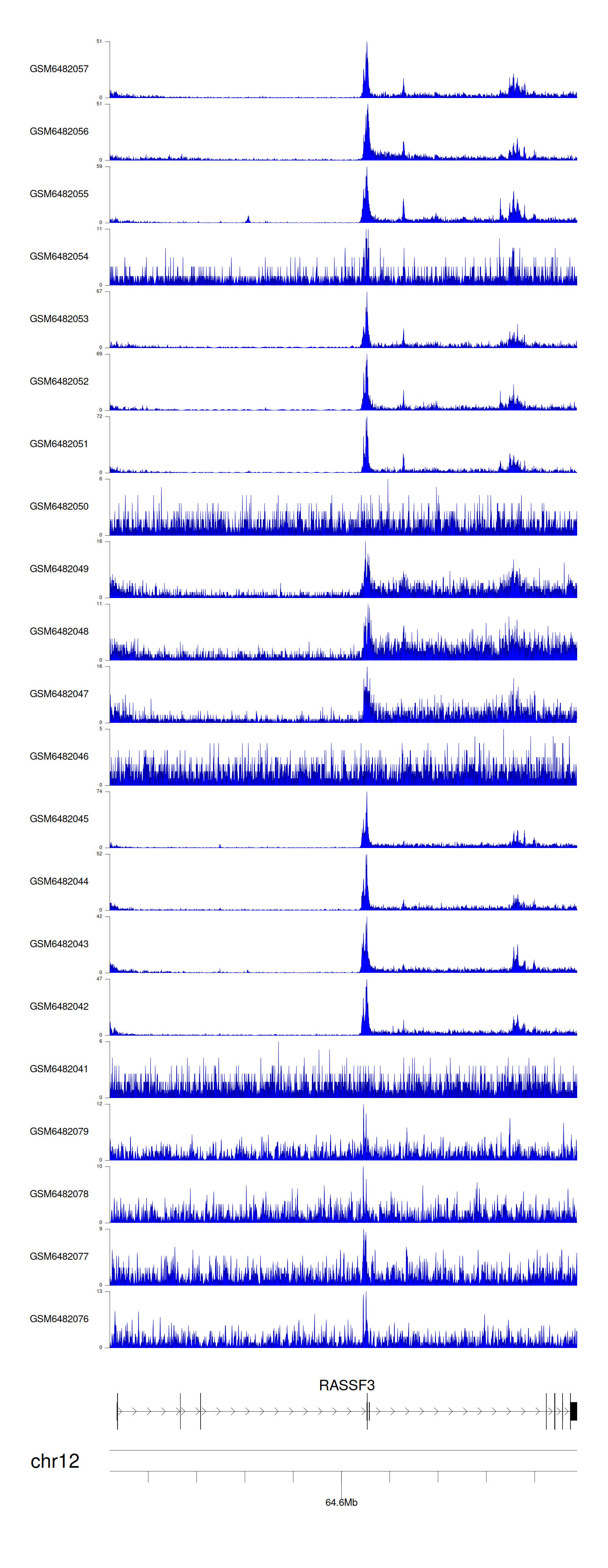 > Dataset: GSE165703 - RASSF3 peak across samples