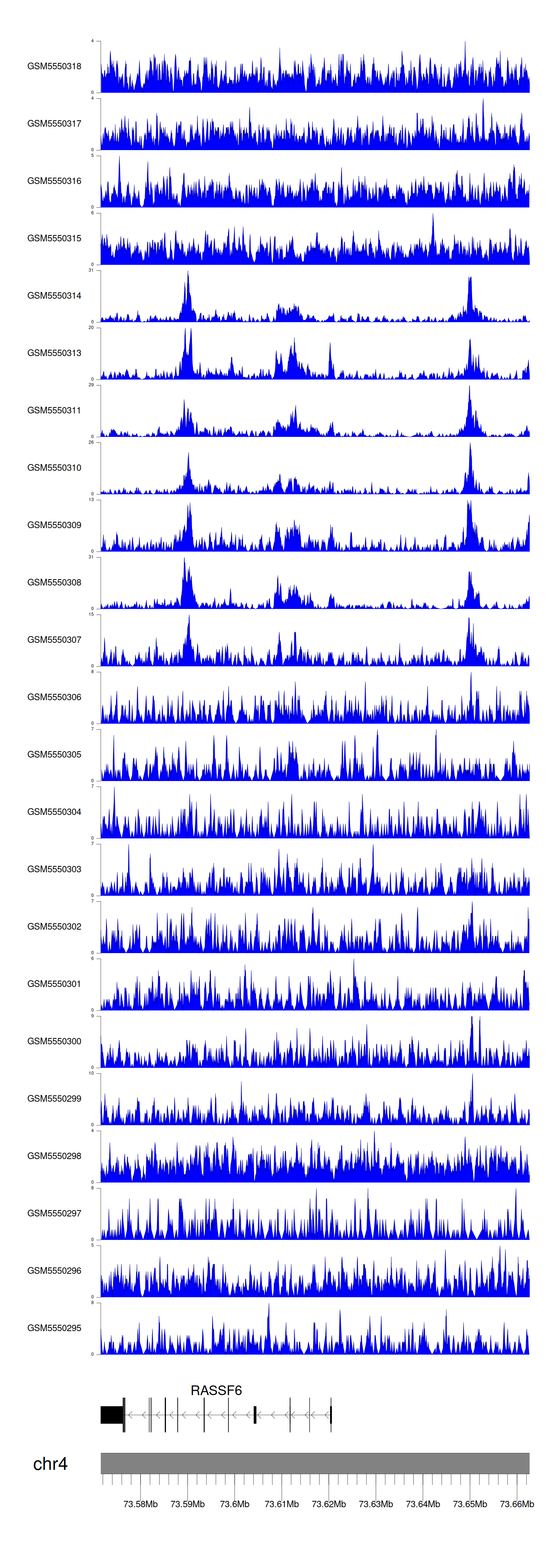 > Dataset: GSE143026 - RASSF6 peak across samples
