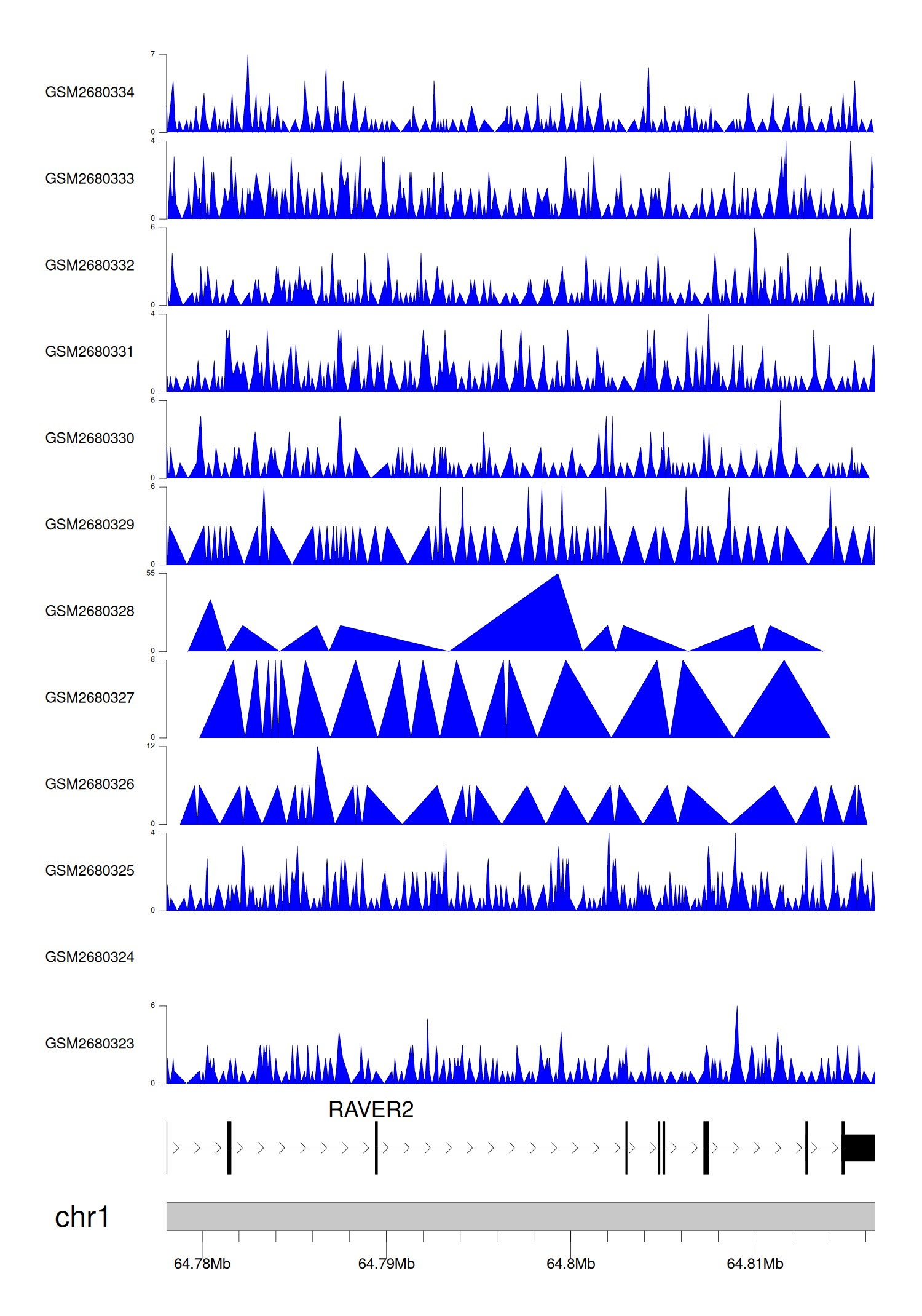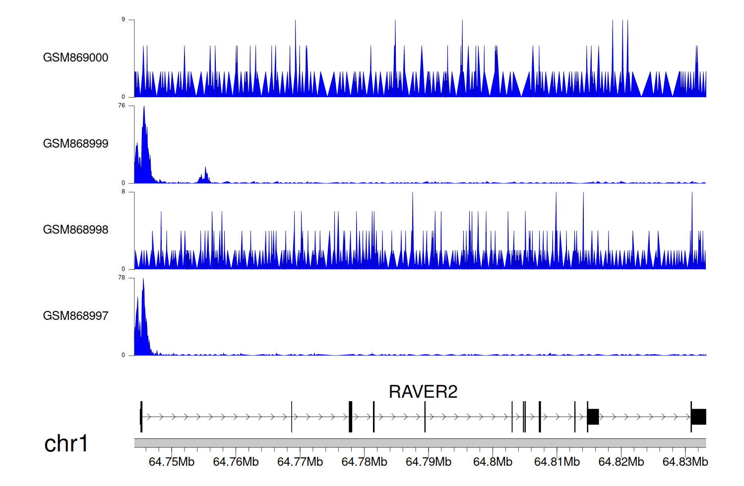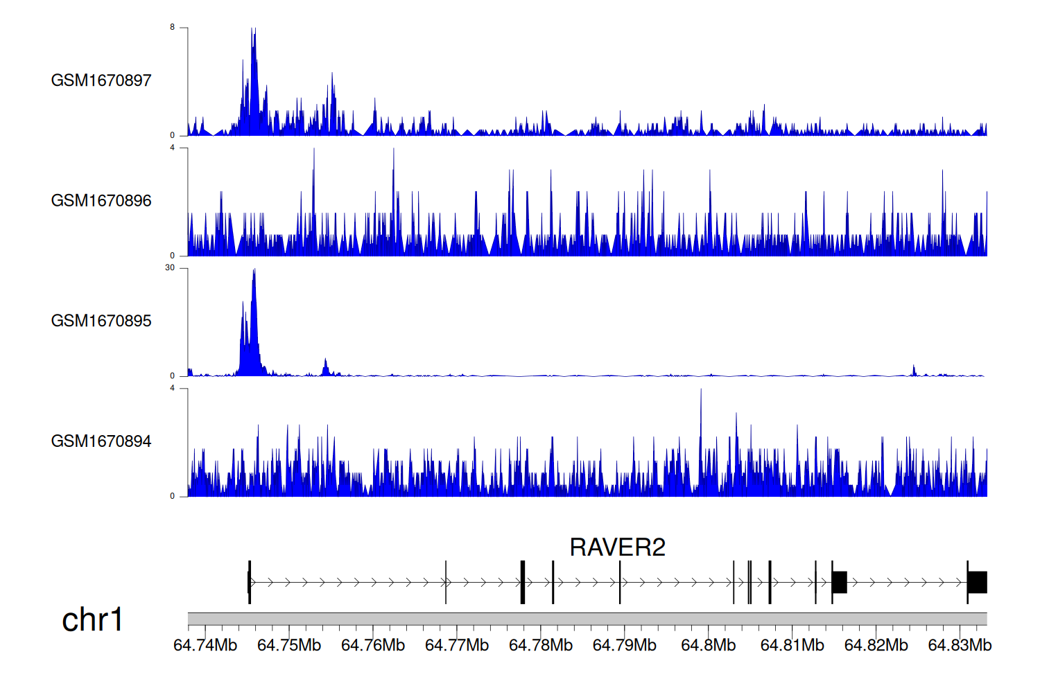 > Dataset: GSE68402 - RAVER2 peak across samples