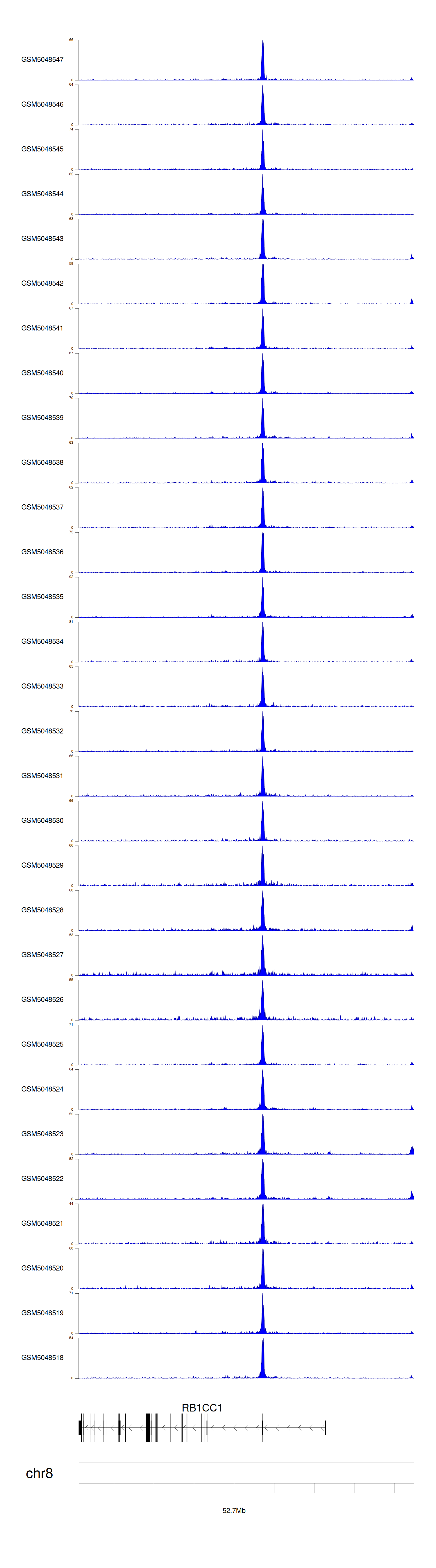 > Dataset: GSE165705 - RB1CC1 peak across samples