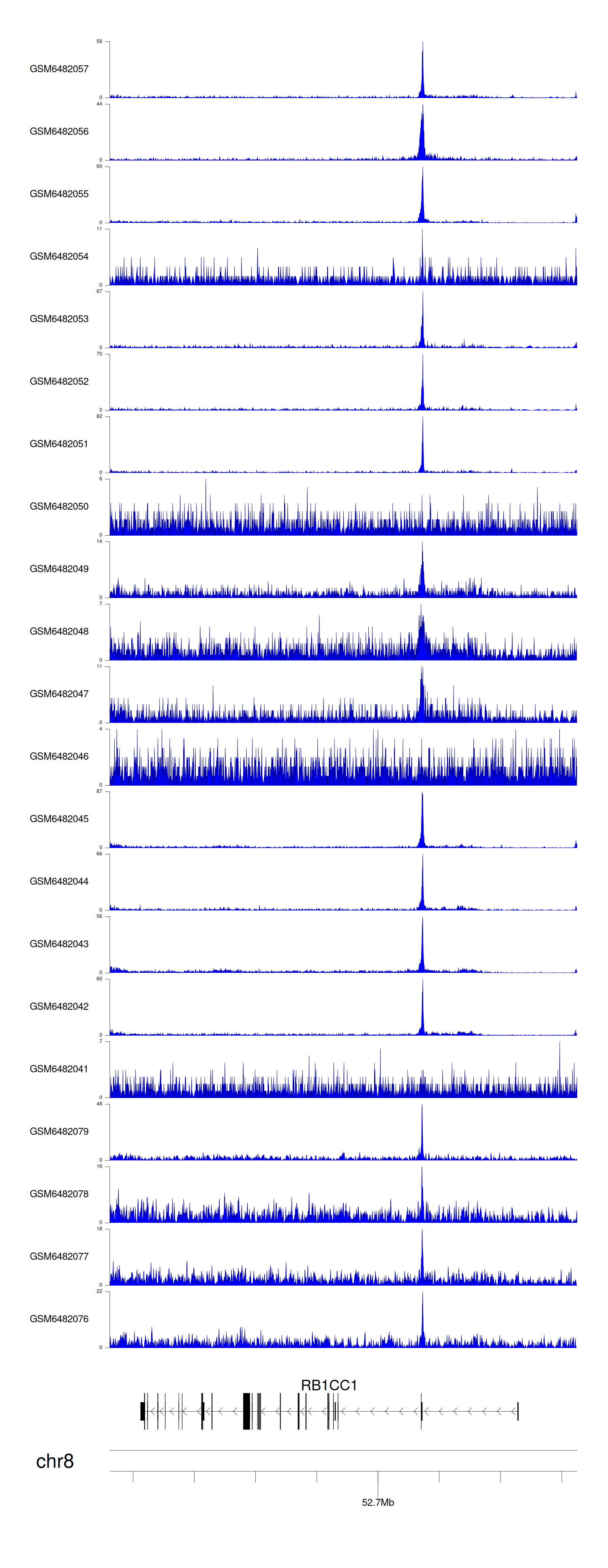 > Dataset: GSE211651 - RB1CC1 peak across samples