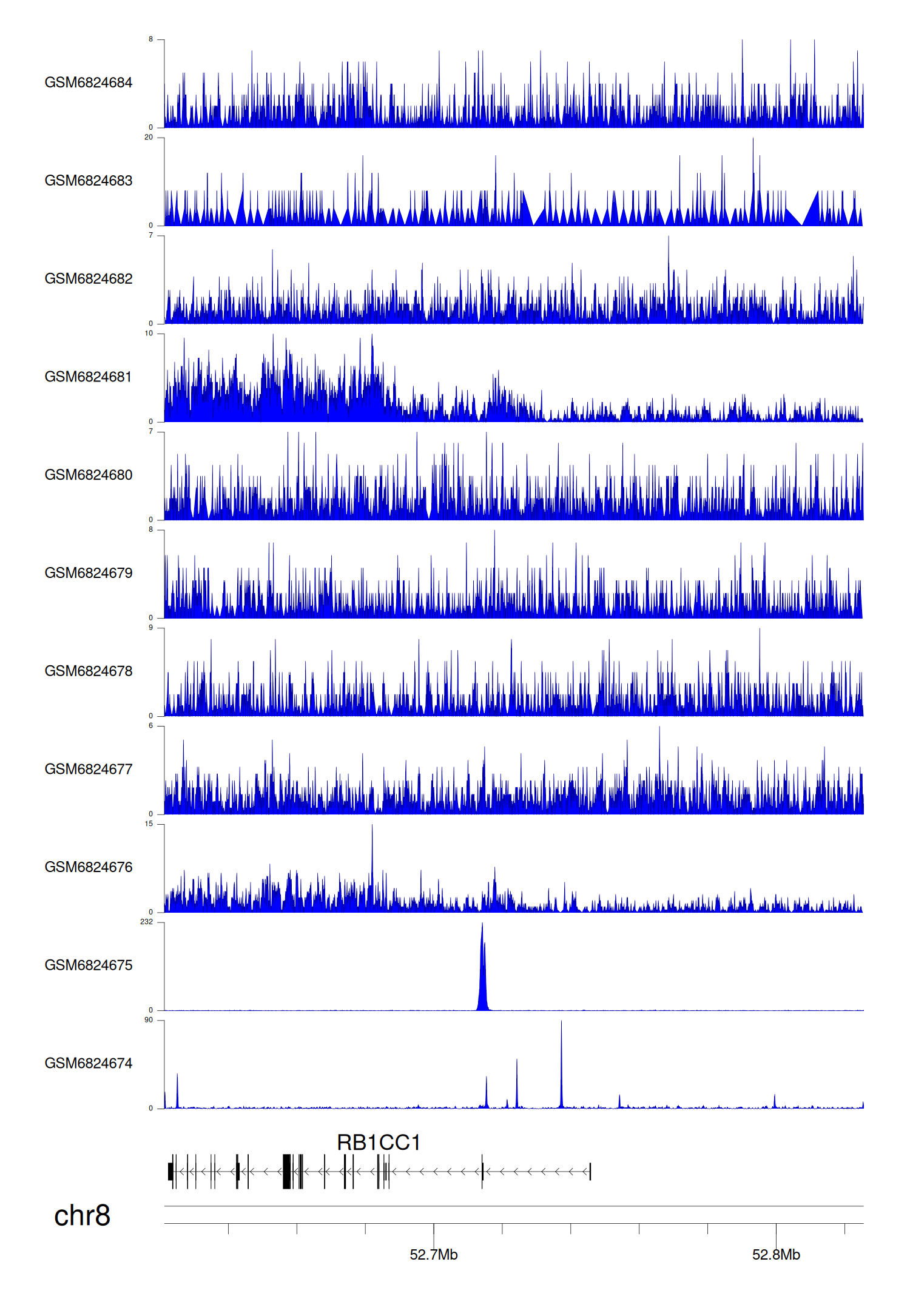 > Dataset: GSE220859 - RB1CC1 peak across samples