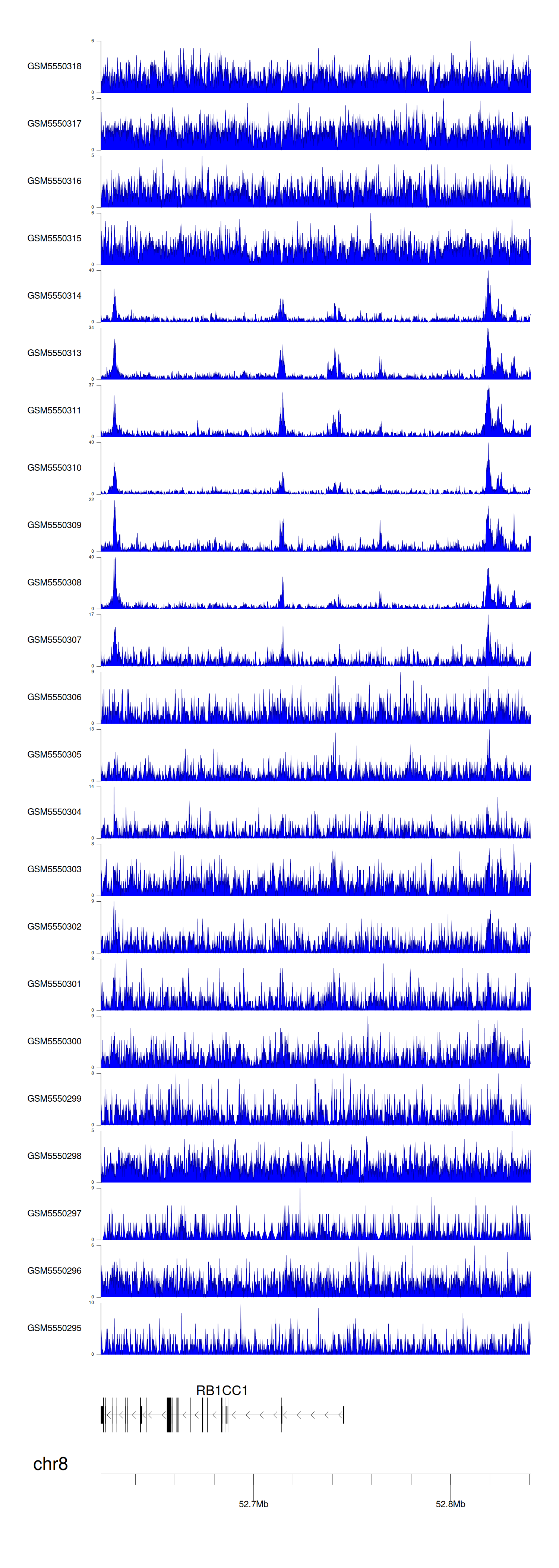 > Dataset: GSE143026 - RB1CC1 peak across samples