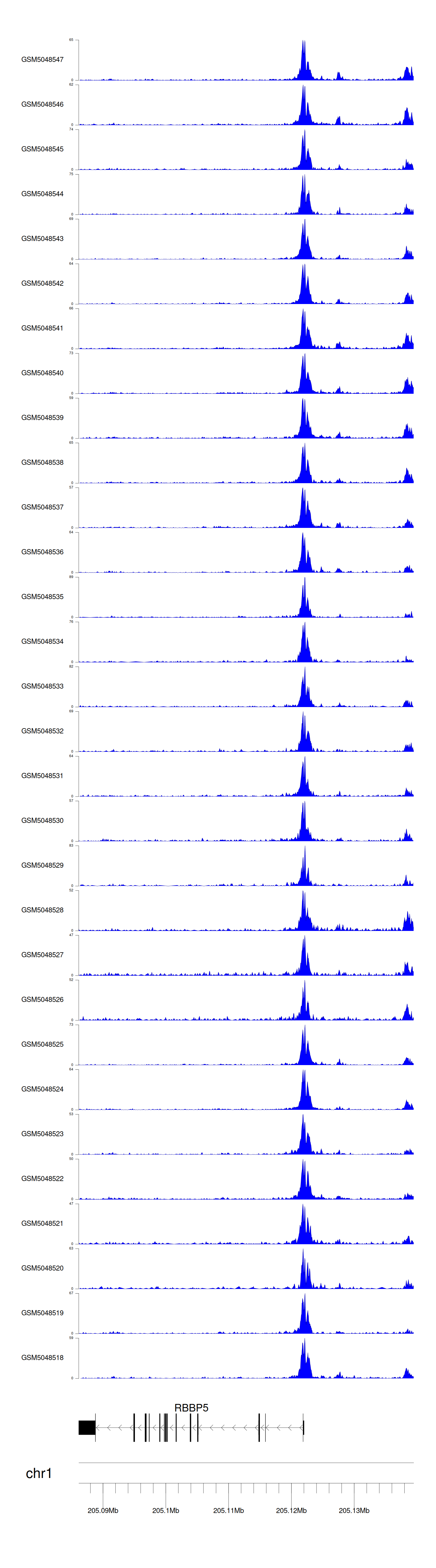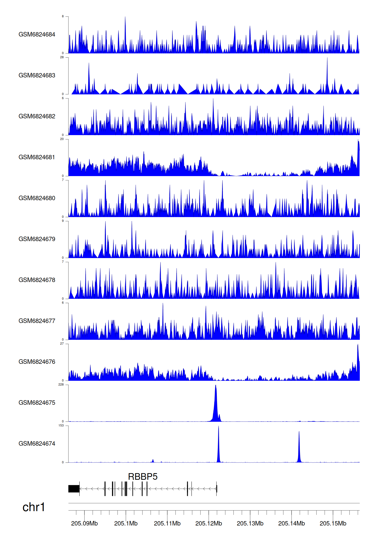 > Dataset: GSE165705 - RBBP5 peak across samples
