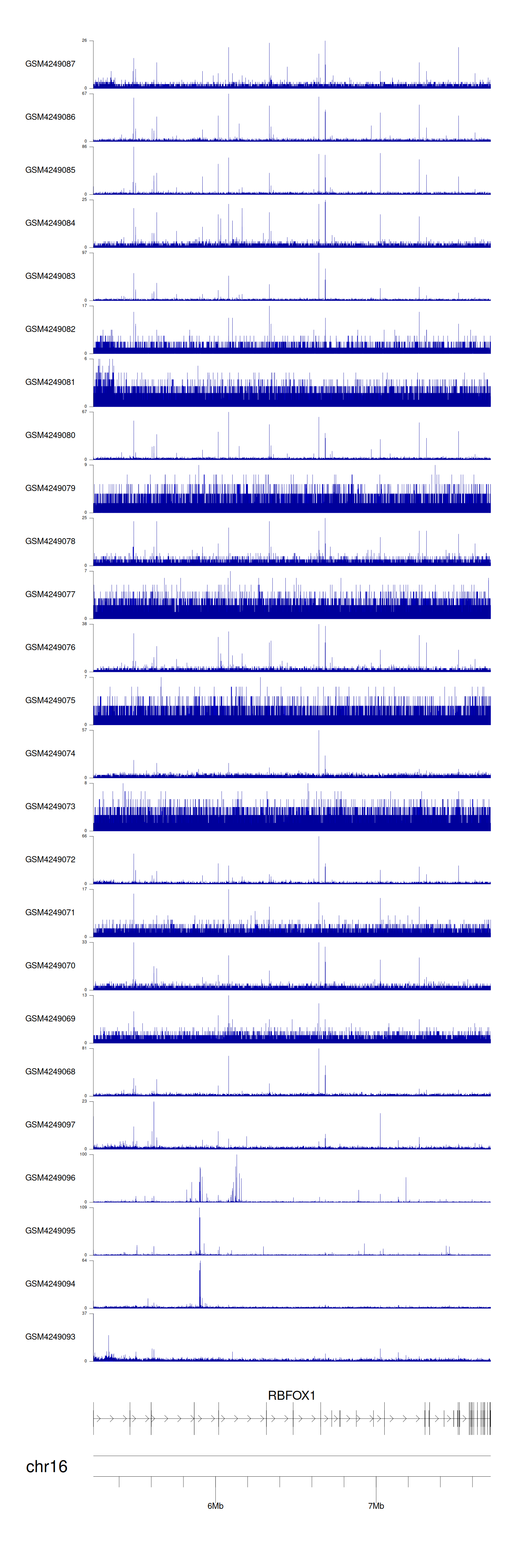 > Dataset: GSE143026 - RBFOX1 peak across samples