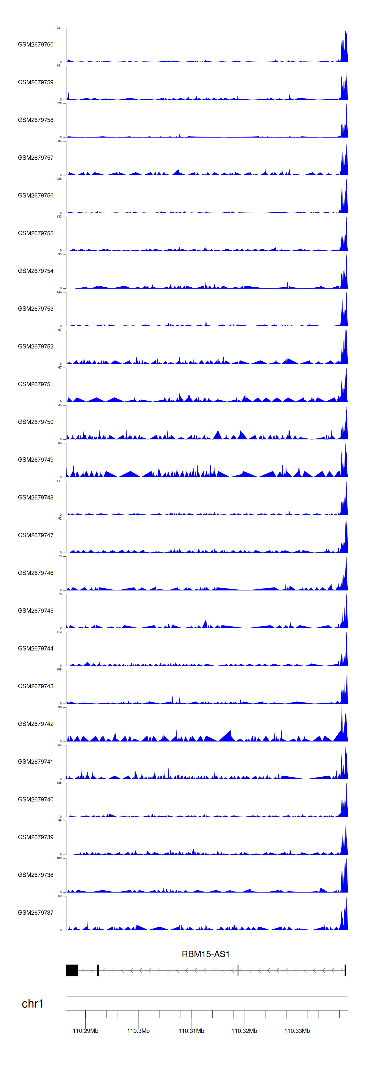 > Dataset: GSE100376 - RBM15-AS1 peak across samples