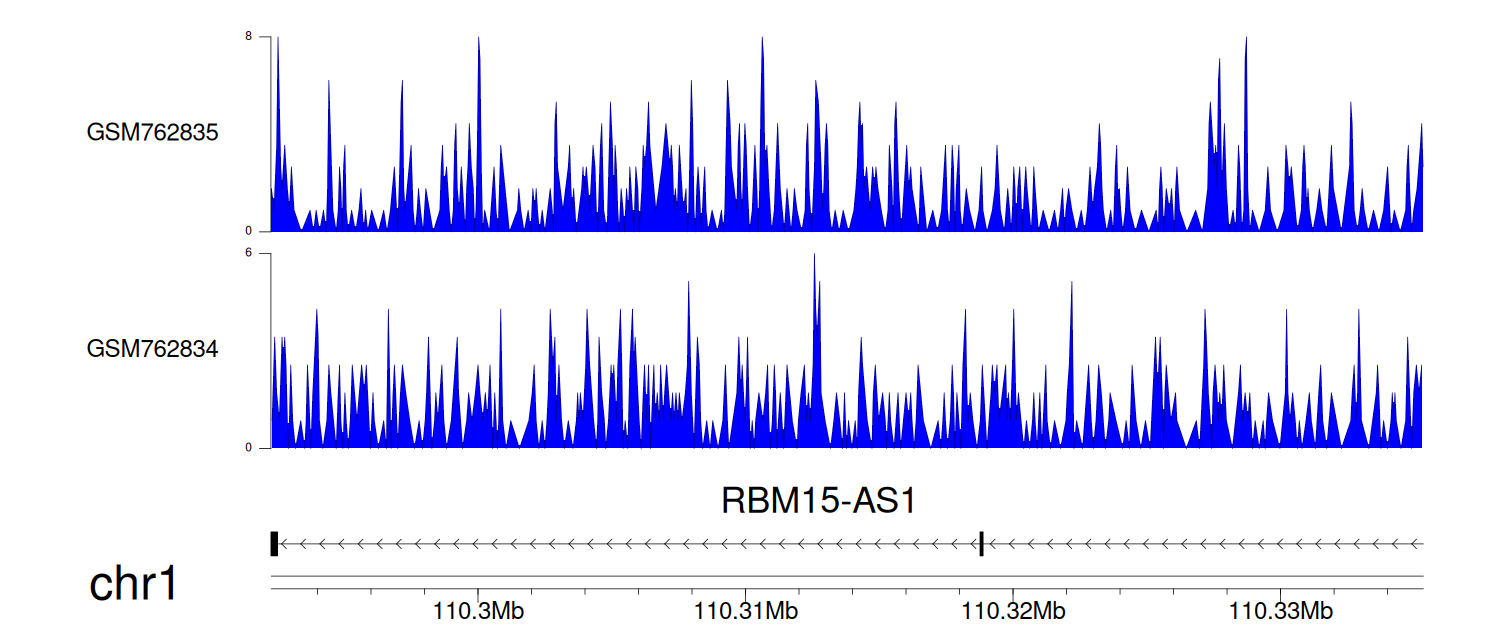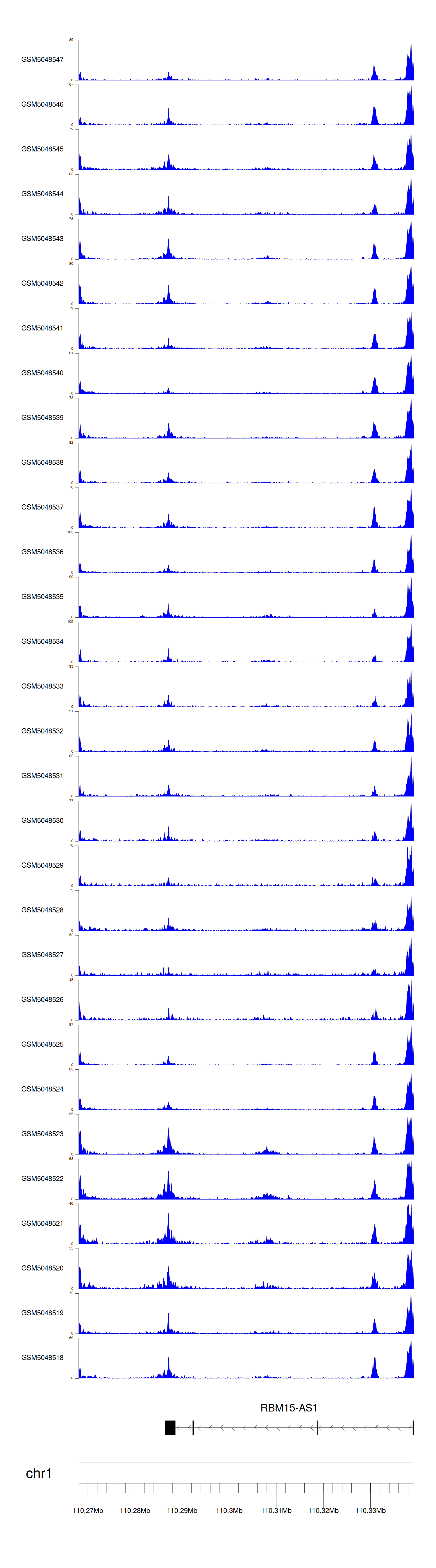 > Dataset: GSE30738 - RBM15-AS1 peak across samples