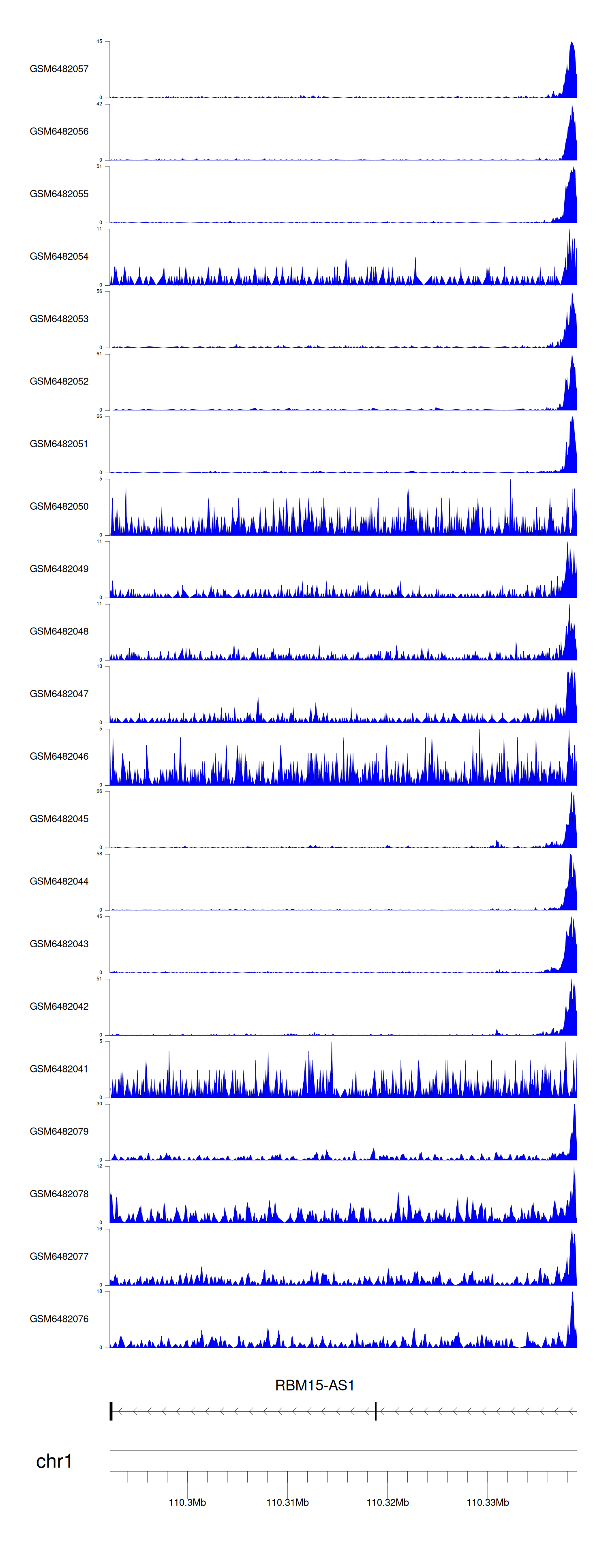 > Dataset: GSE165703 - RBM15-AS1 peak across samples