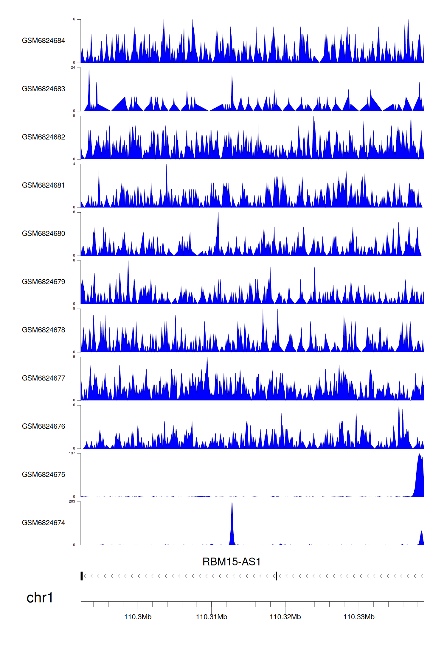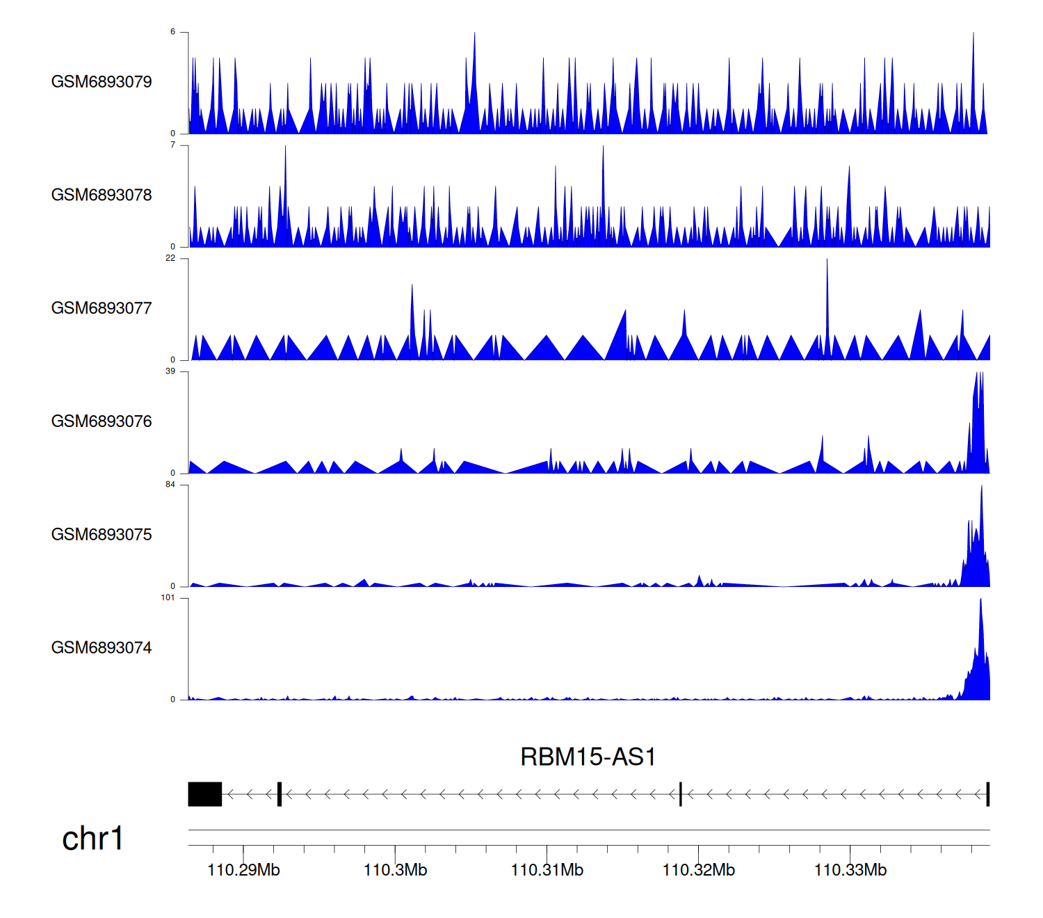 > Dataset: GSE211651 - RBM15-AS1 peak across samples