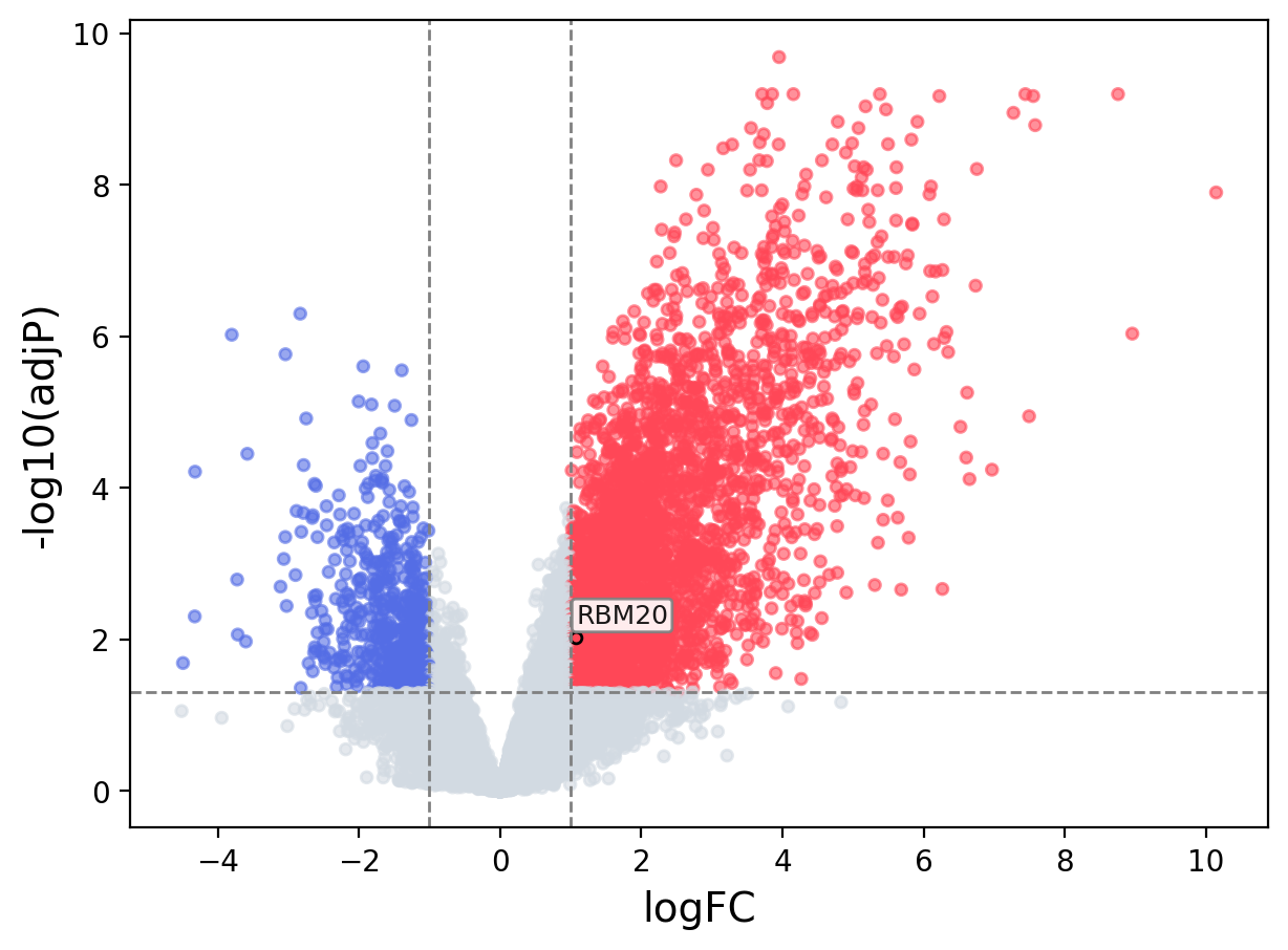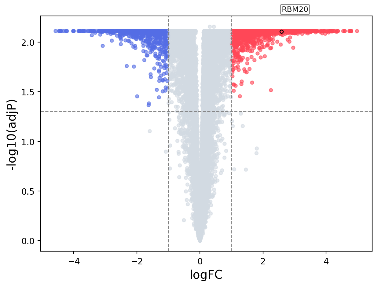 When the query gene is differentially changed in the dataset, a volcano/bar plot will be displayed.