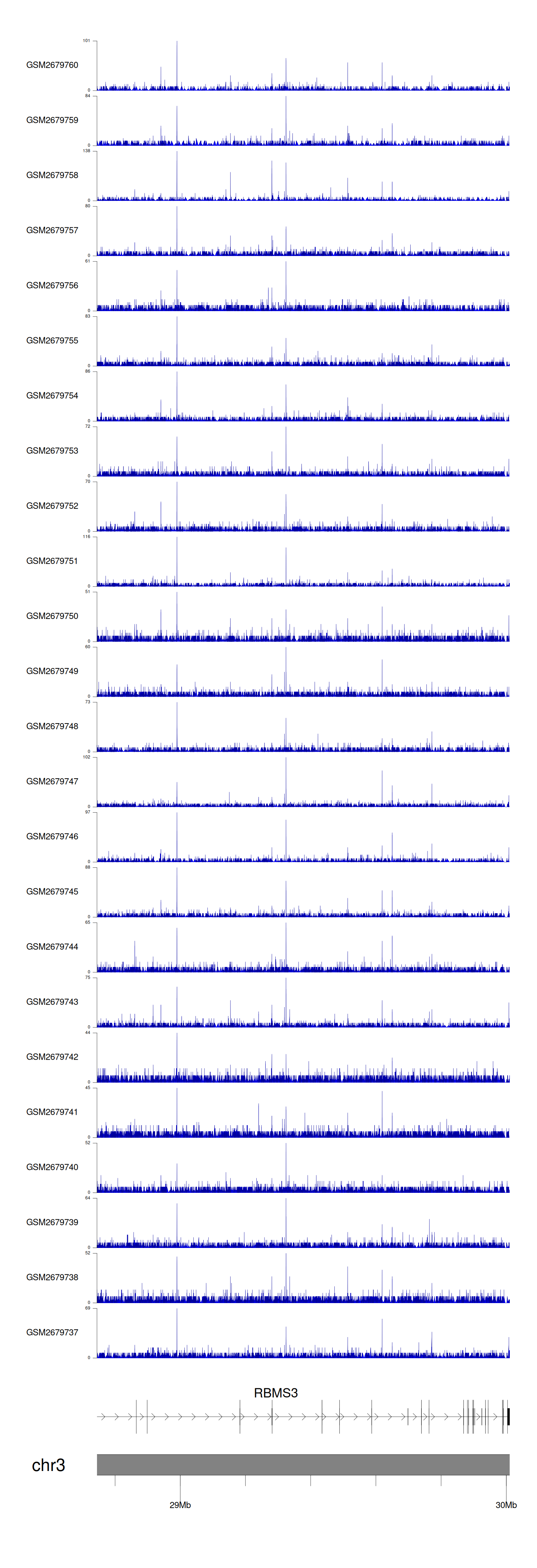 > Dataset: GSE100376 - RBMS3 peak across samples