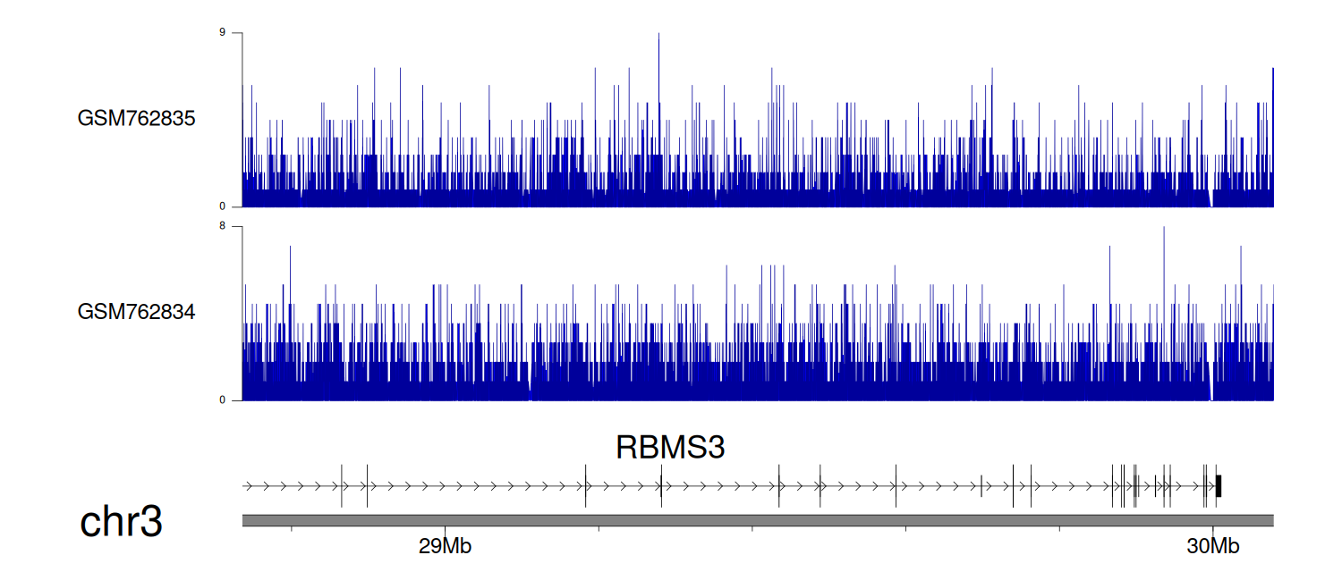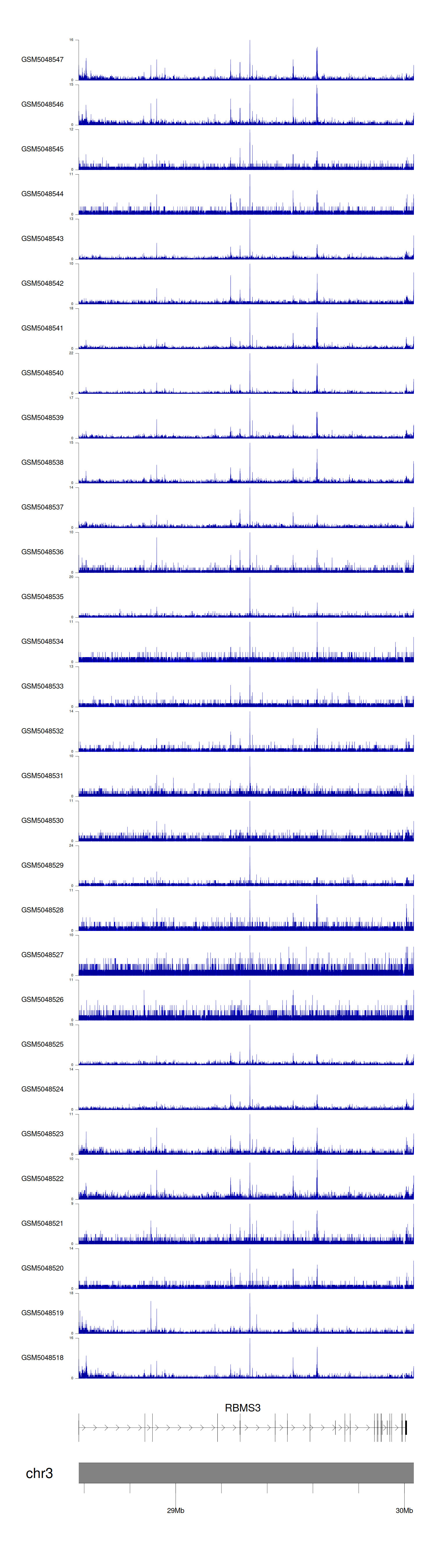 > Dataset: GSE30738 - RBMS3 peak across samples
