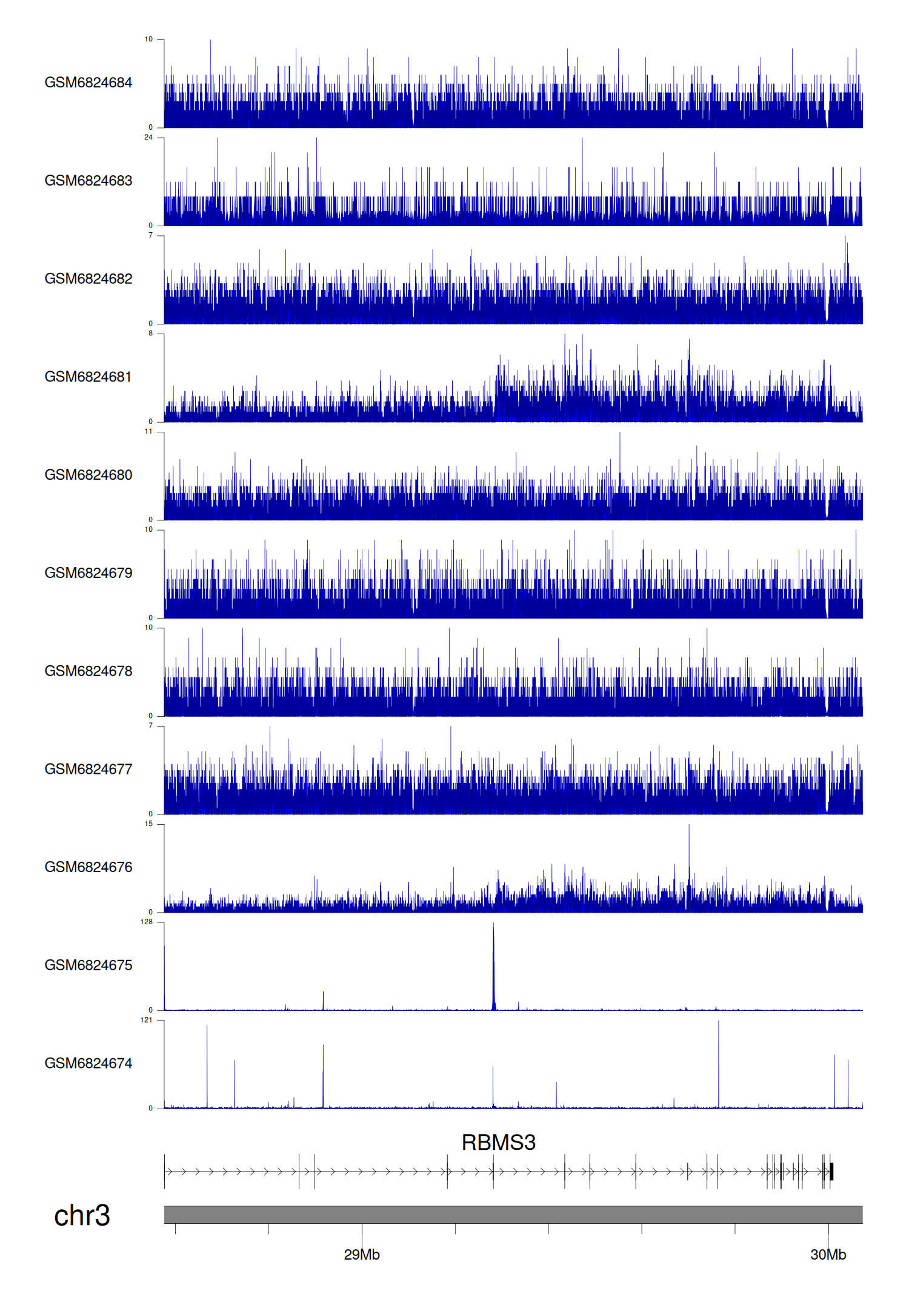> Dataset: GSE144329 - RBMS3 peak across samples