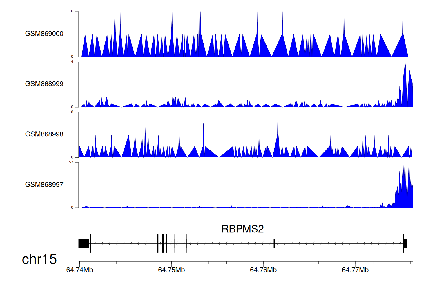 > Dataset: GSE68402 - RBPMS2 peak across samples