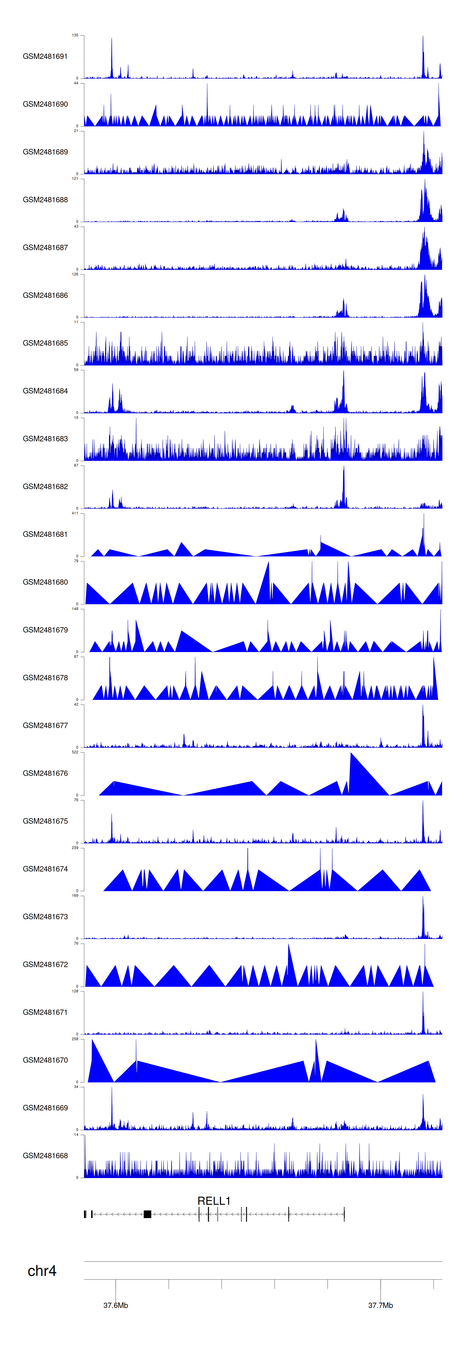 > Dataset: GSE94732 - RELL1 peak across samples