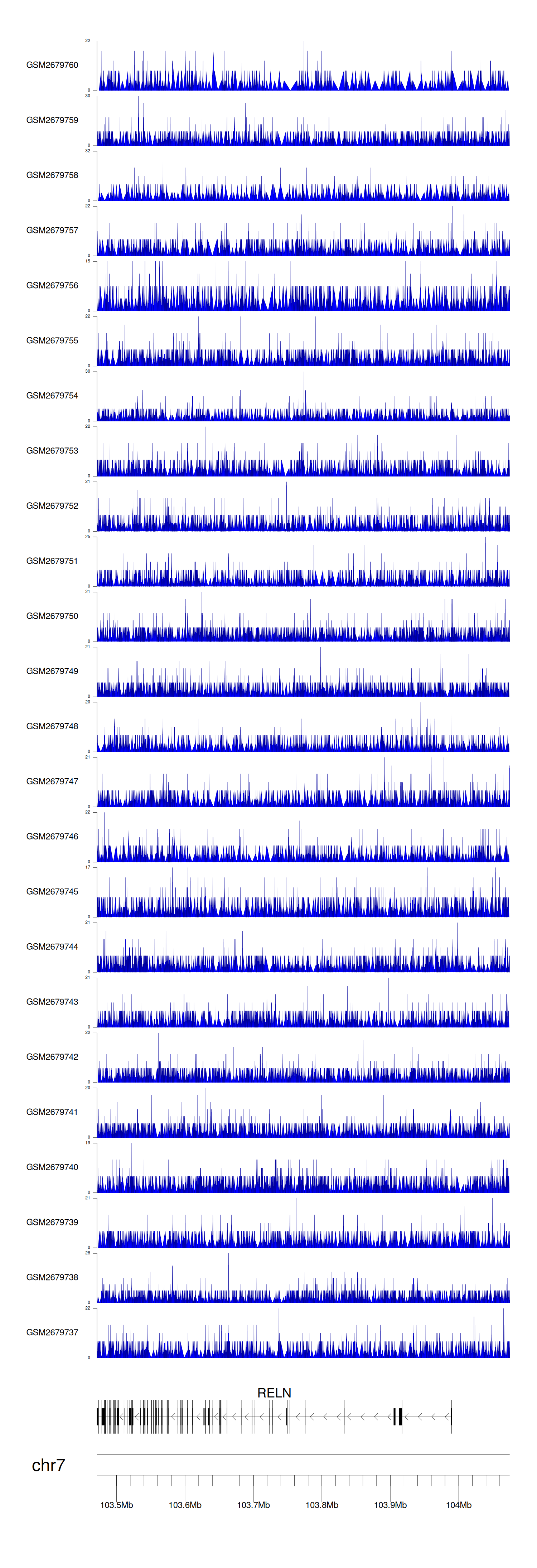 > Dataset: GSE30738 - RELN peak across samples