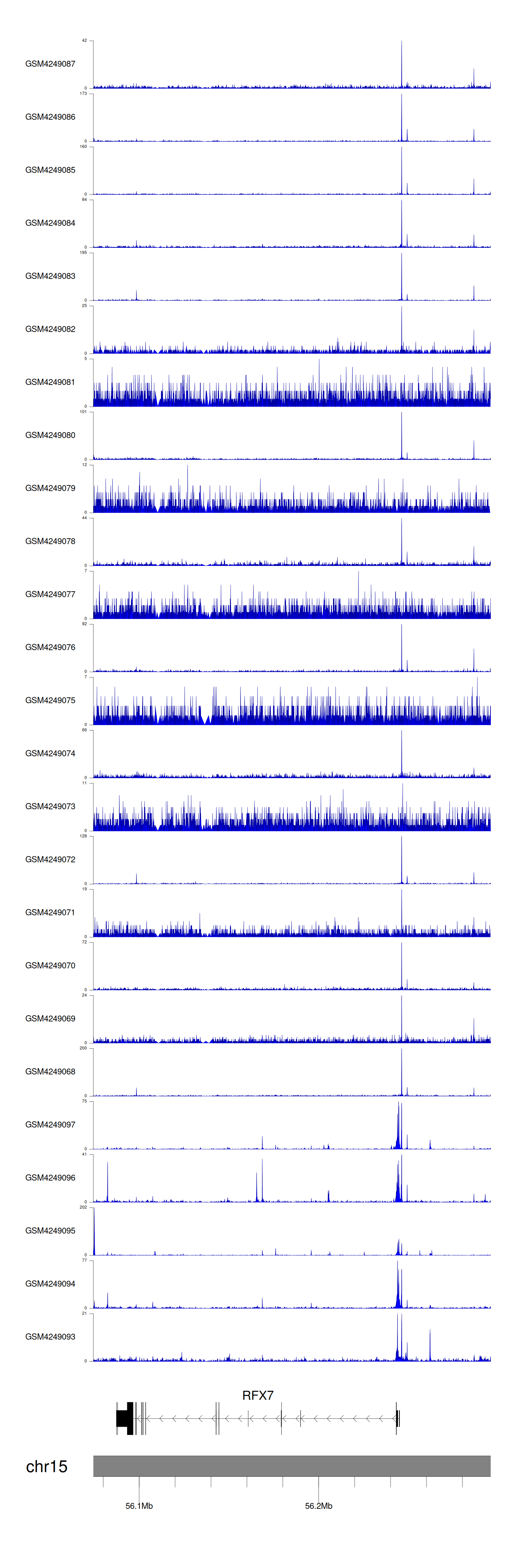> Dataset: GSE143026 - RFX7 peak across samples
