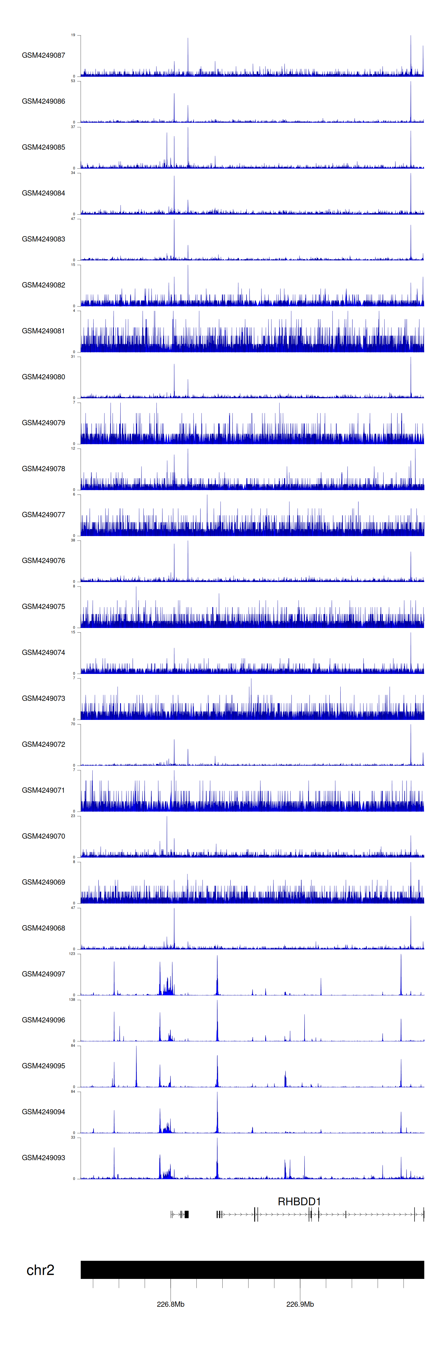 > Dataset: GSE143026 - RHBDD1 peak across samples