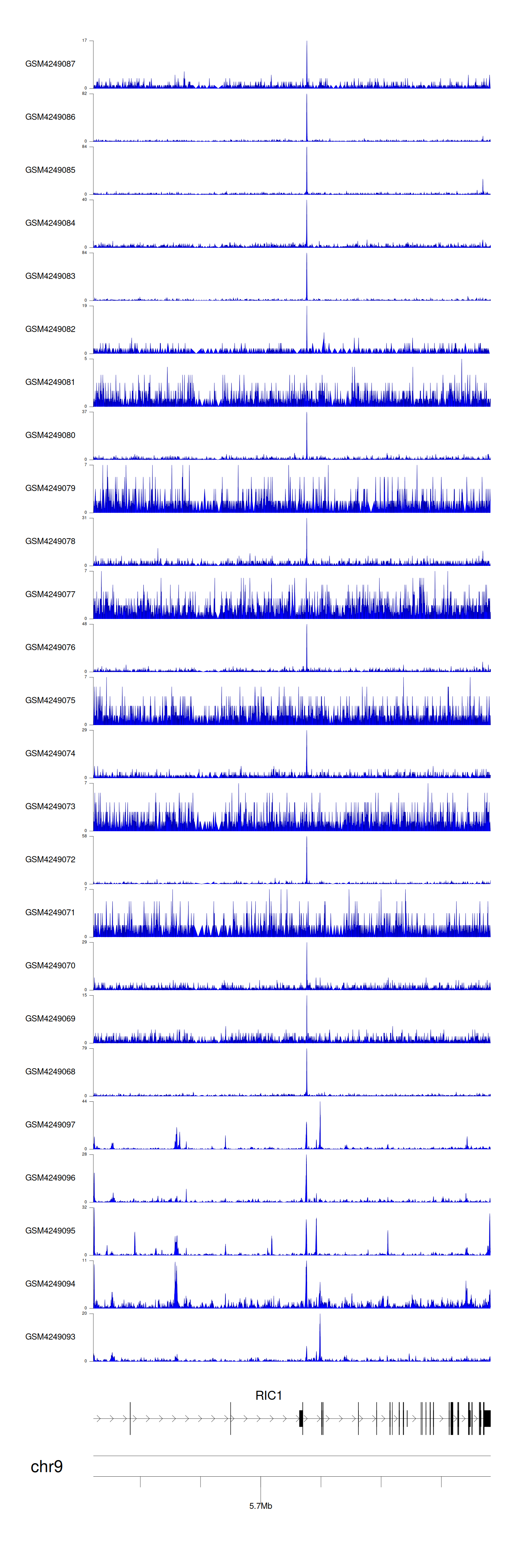 > Dataset: GSE143026 - RIC1 peak across samples