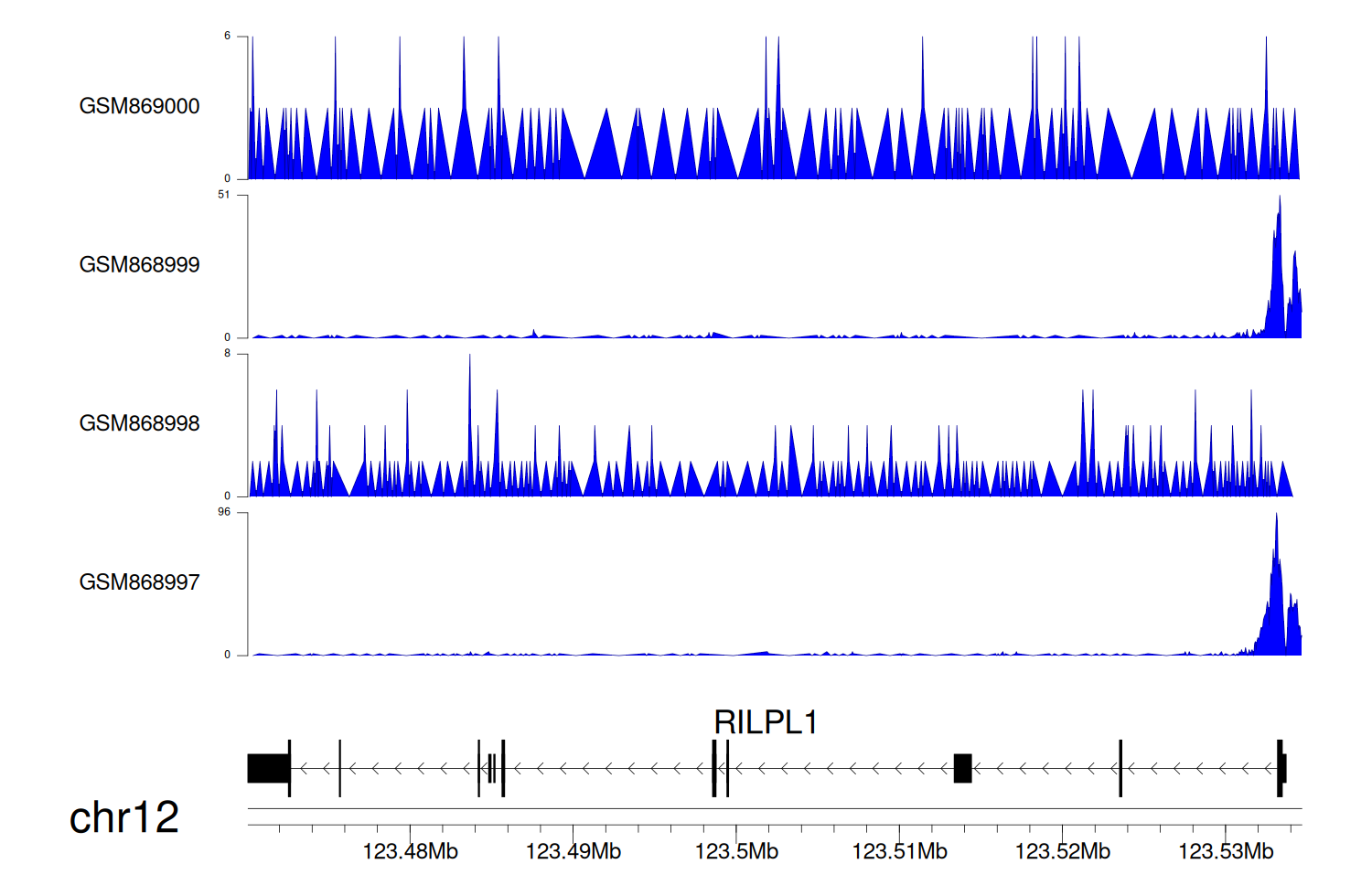 > Dataset: GSE68402 - RILPL1 peak across samples