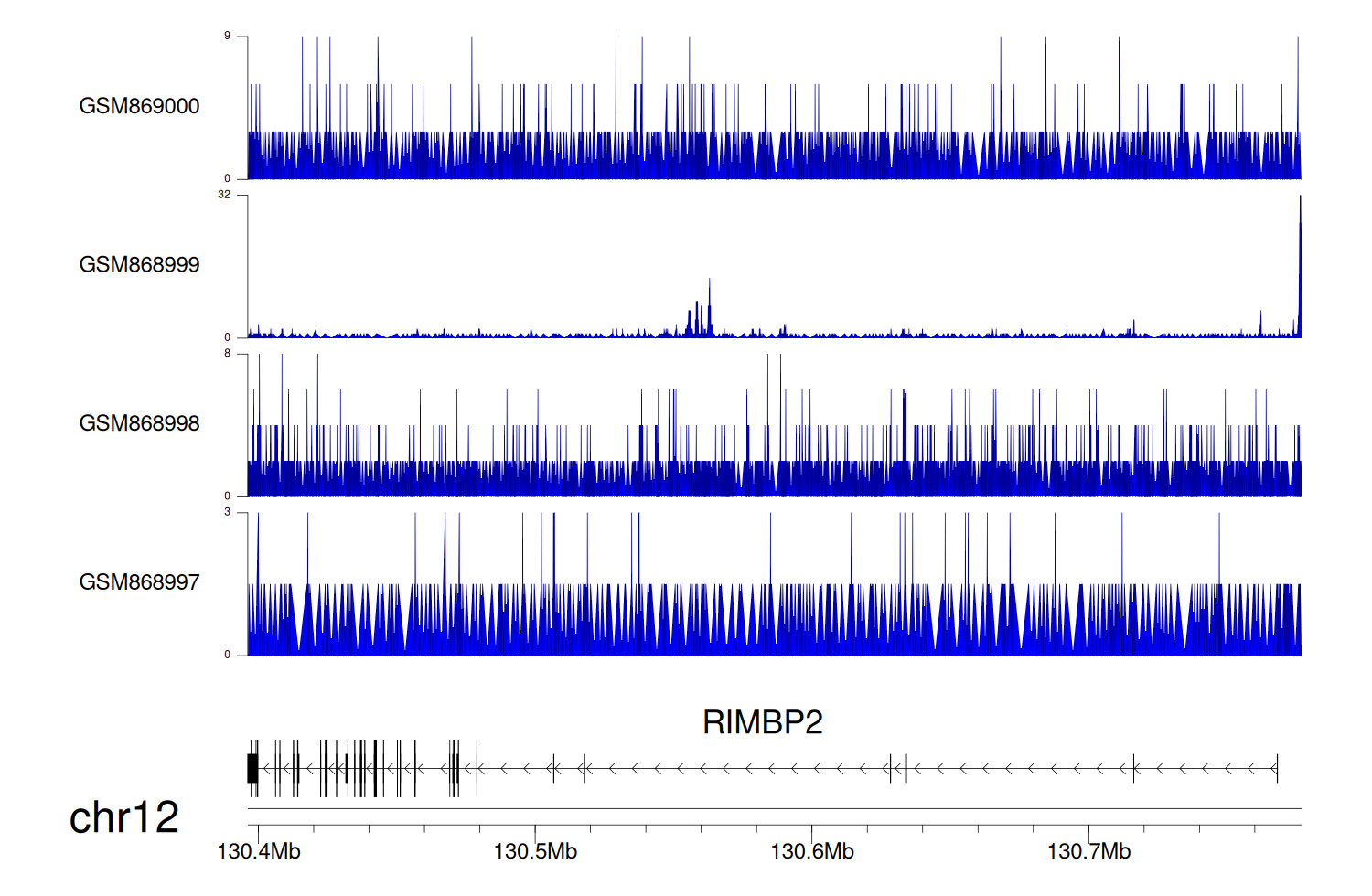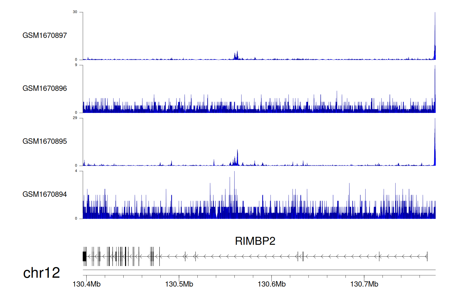 > Dataset: GSE68402 - RIMBP2 peak across samples