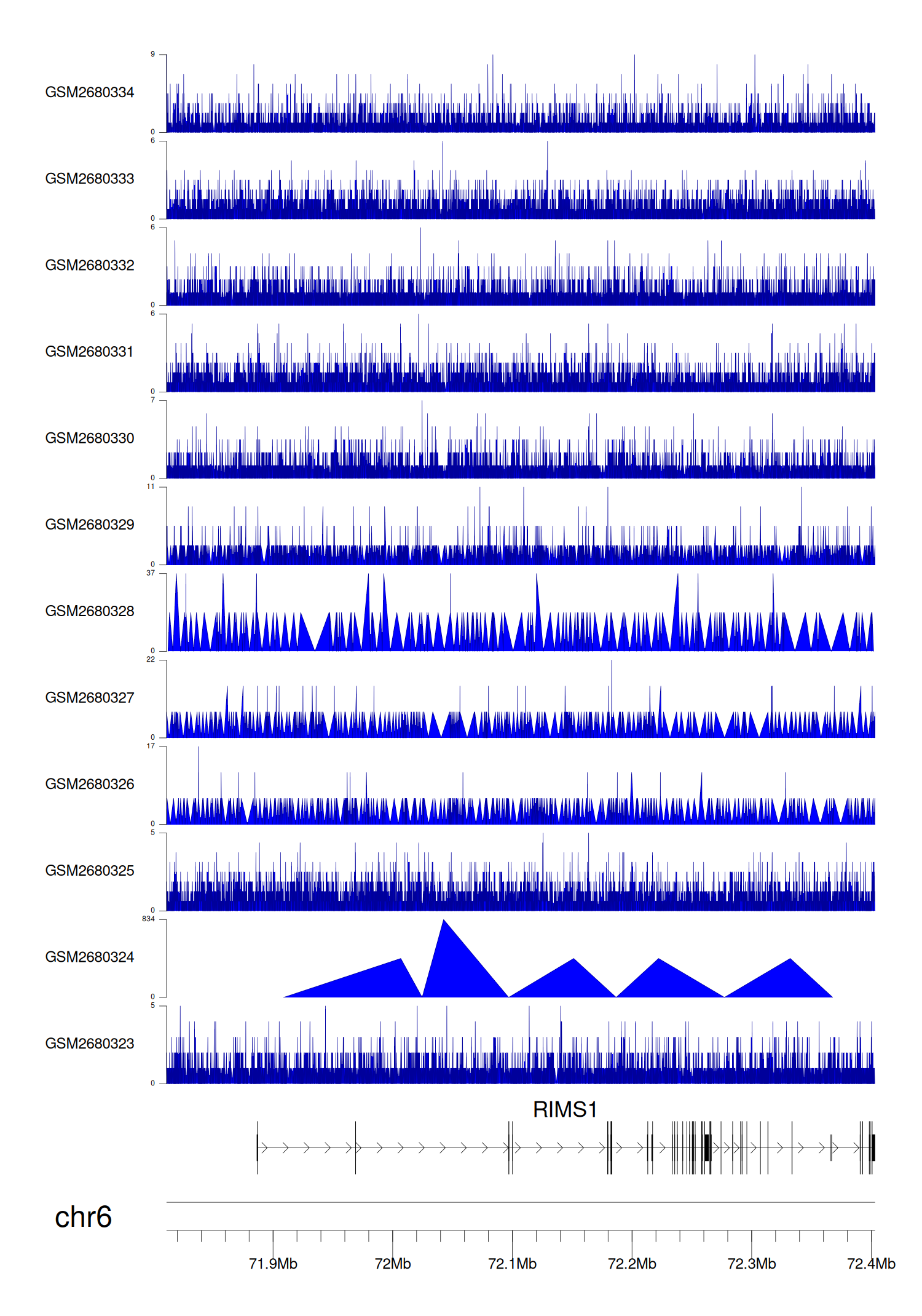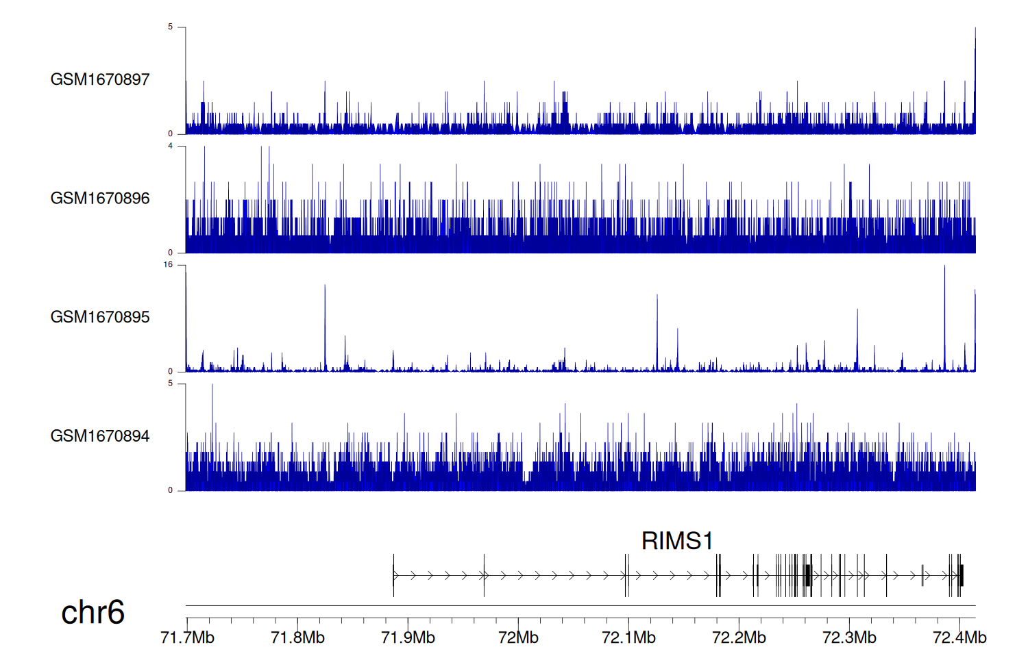 > Dataset: GSE68402 - RIMS1 peak across samples