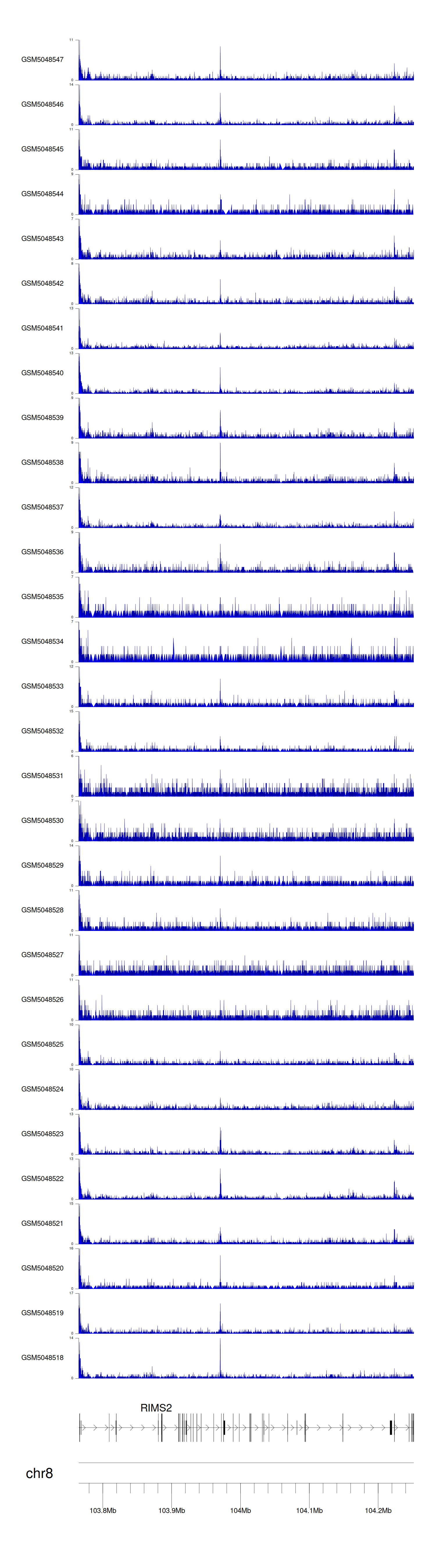 > Dataset: GSE100376 - RIMS2 peak across samples
