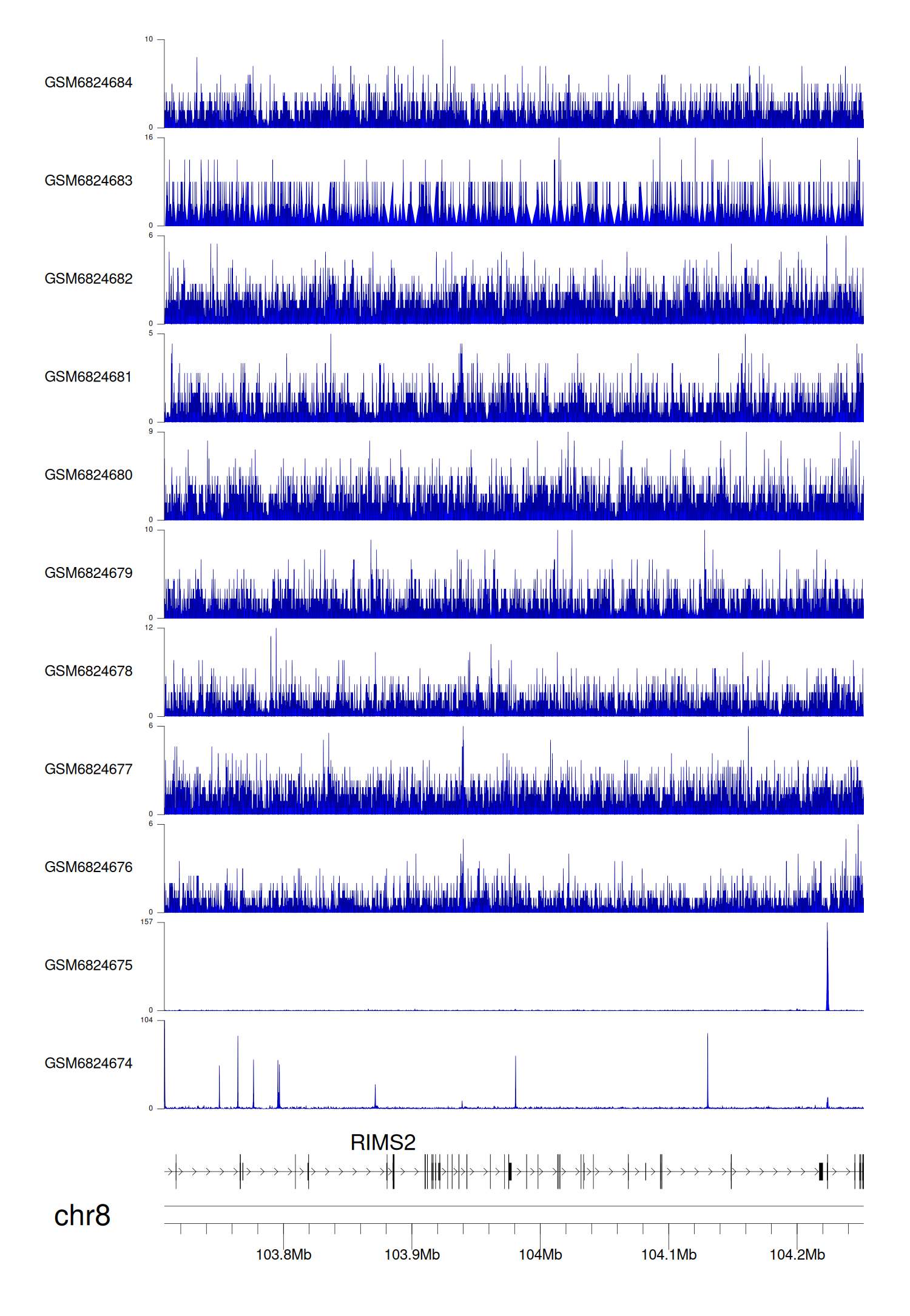 > Dataset: GSE144329 - RIMS2 peak across samples