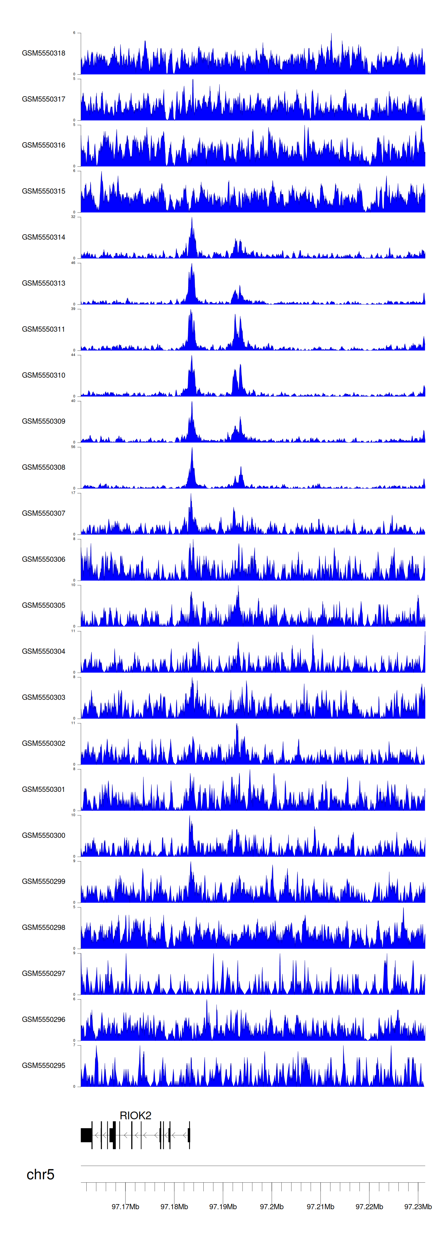 > Dataset: GSE143026 - RIOK2 peak across samples