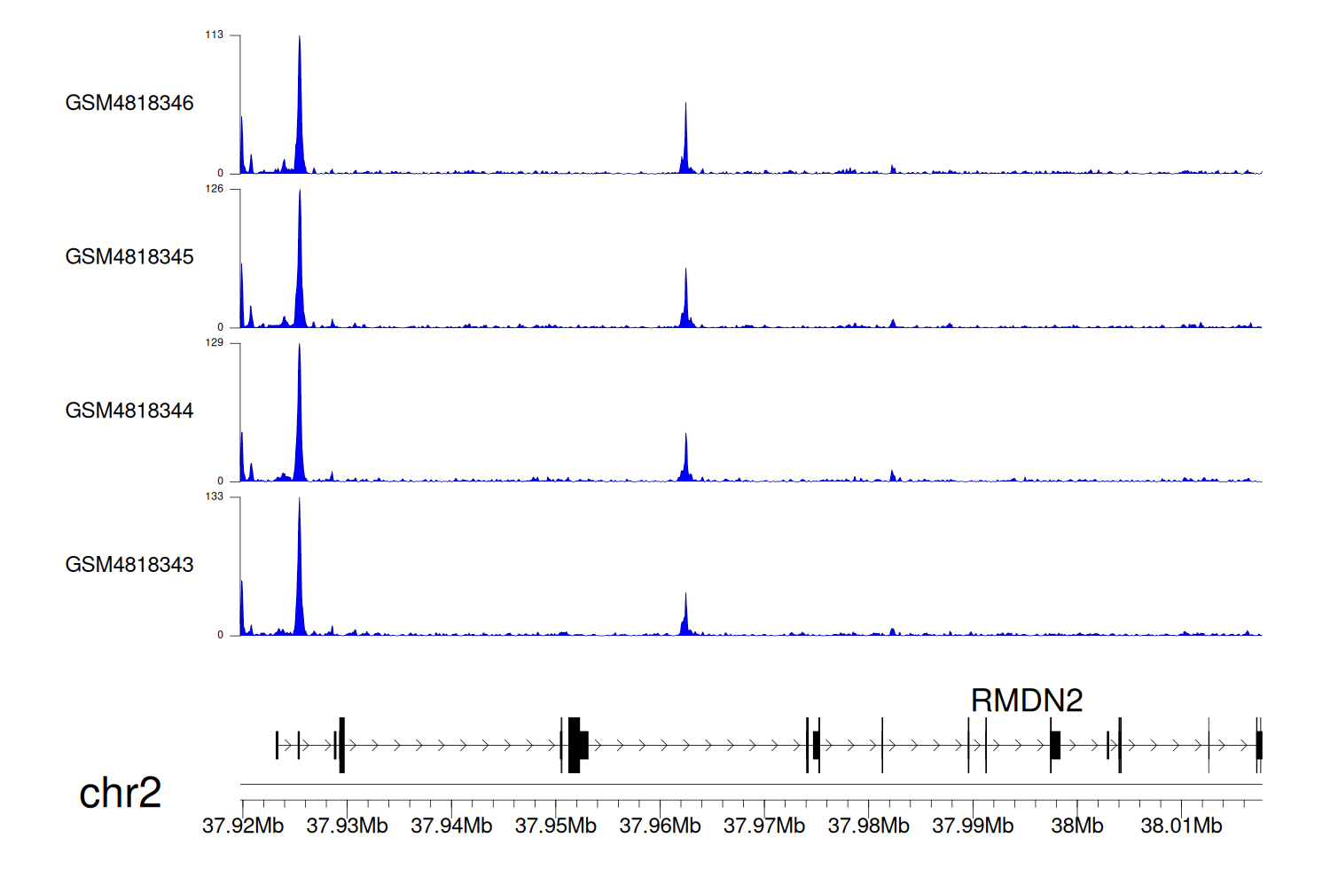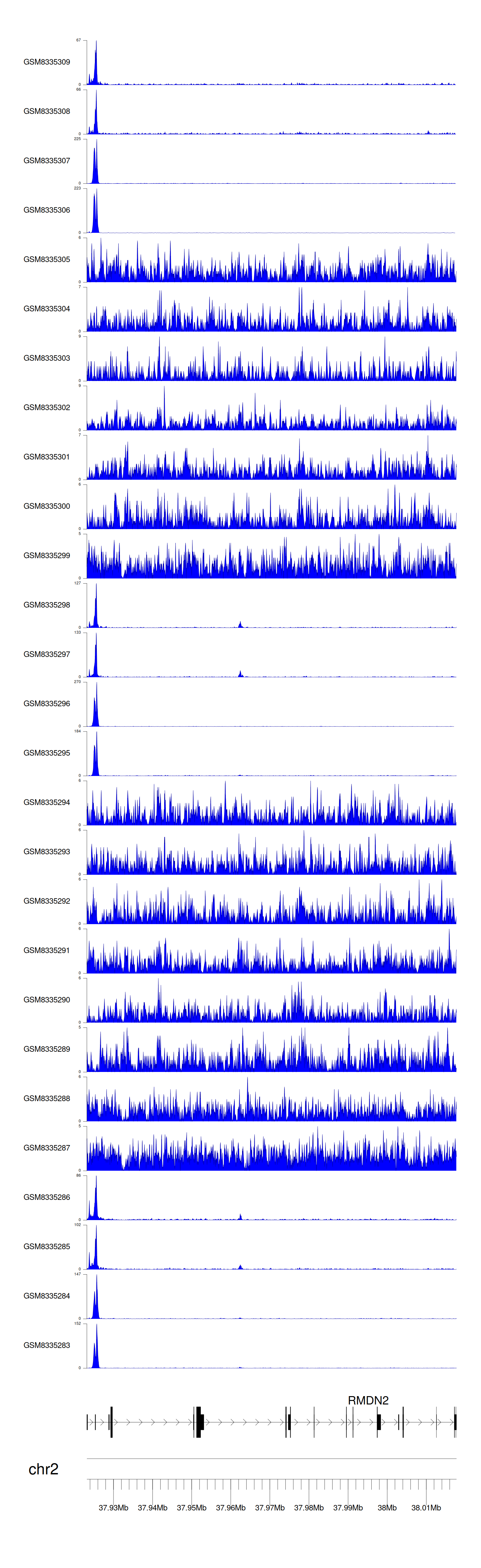 > Dataset: GSE131257 - RMDN2 peak across samples