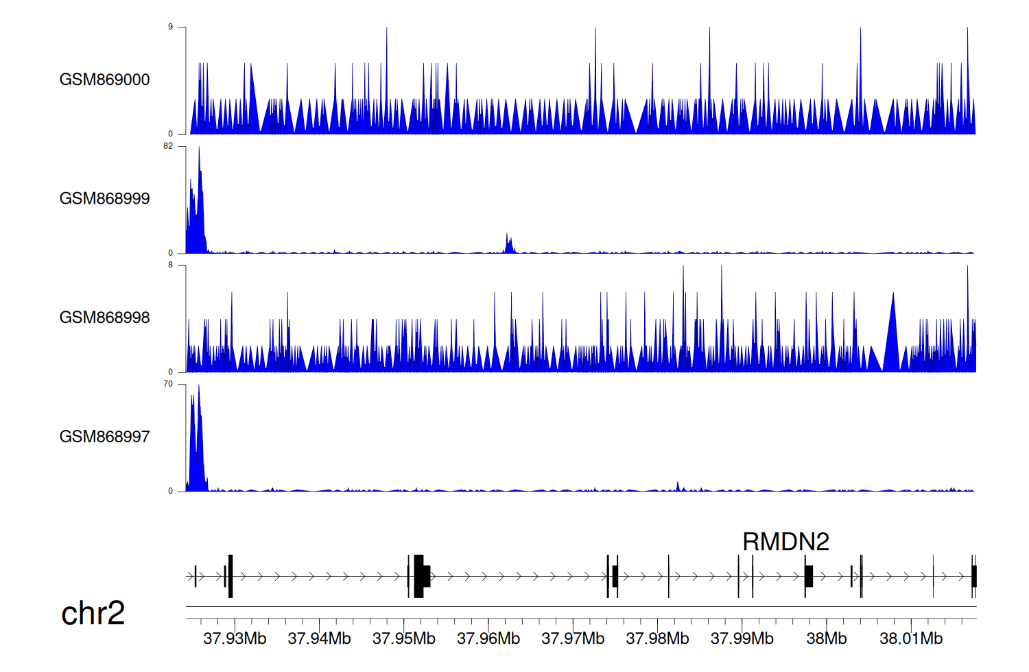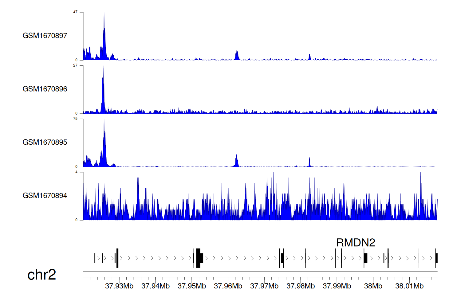 > Dataset: GSE68402 - RMDN2 peak across samples