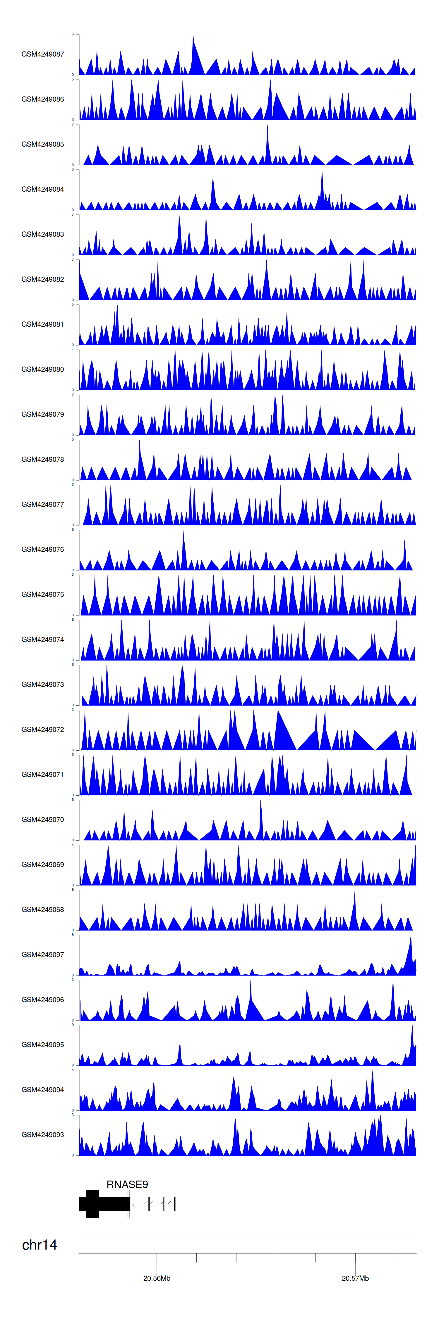 > Dataset: GSE143026 - RNASE9 peak across samples
