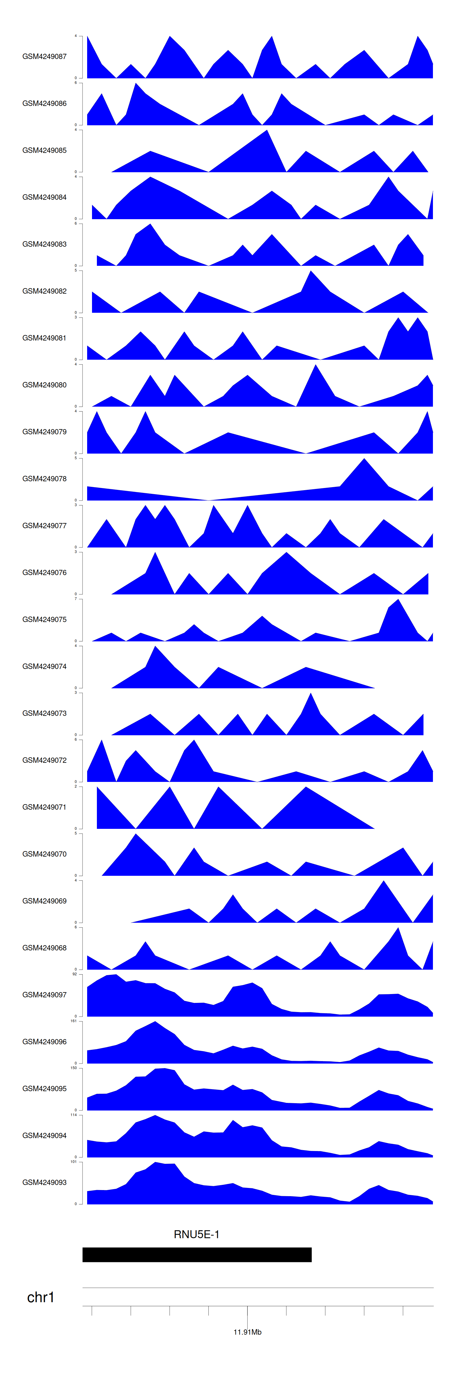 > Dataset: GSE143026 - RNU5E-1 peak across samples