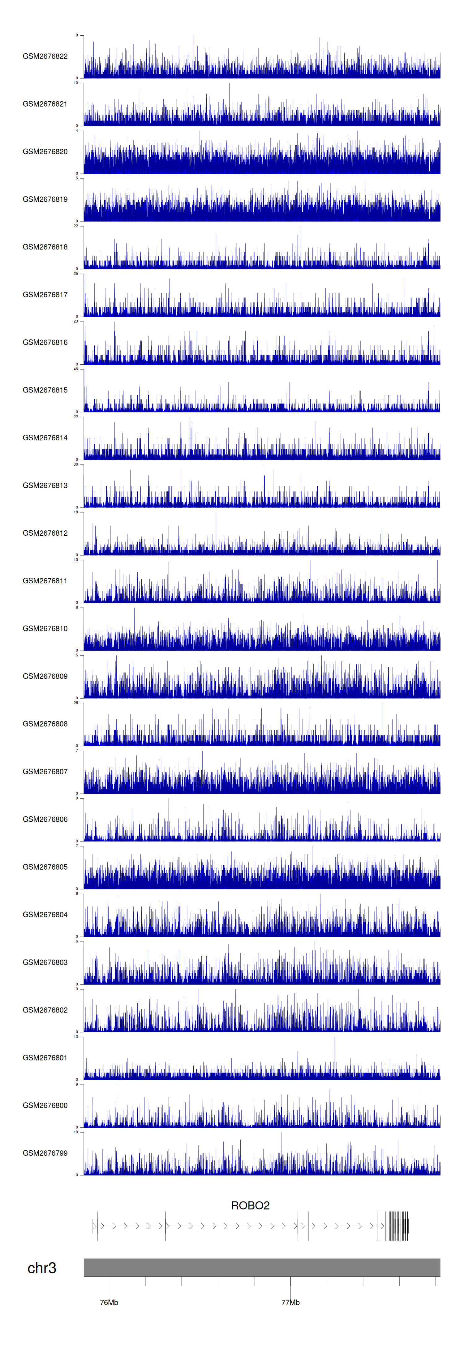 > Dataset: GSE100376 - ROBO2 peak across samples